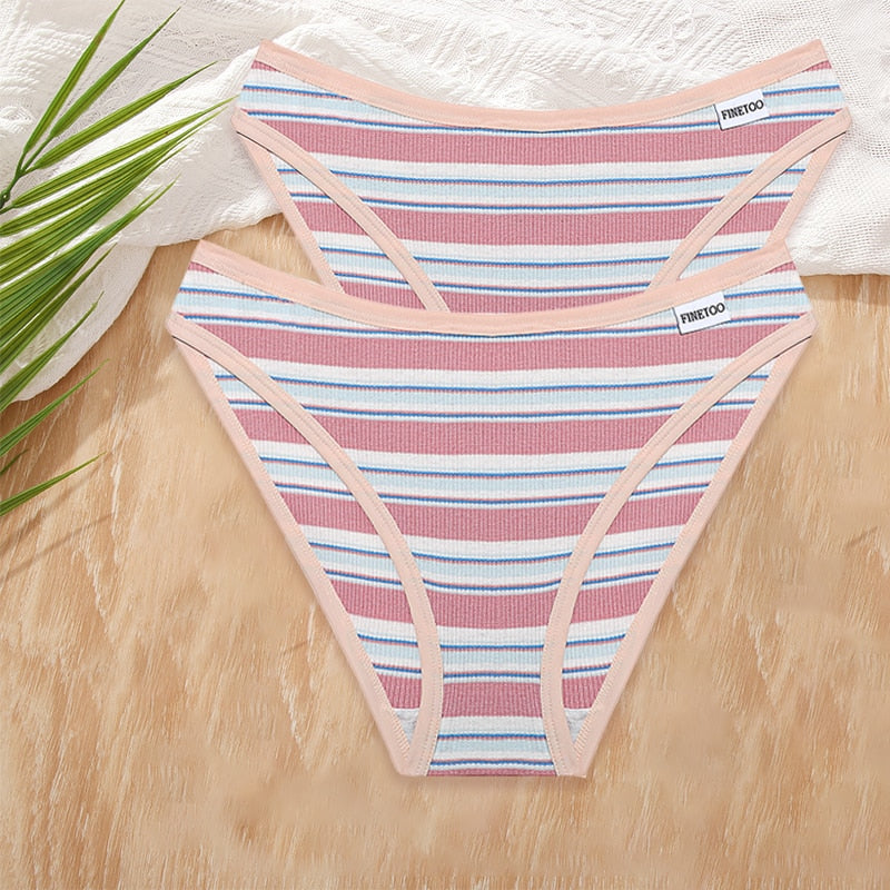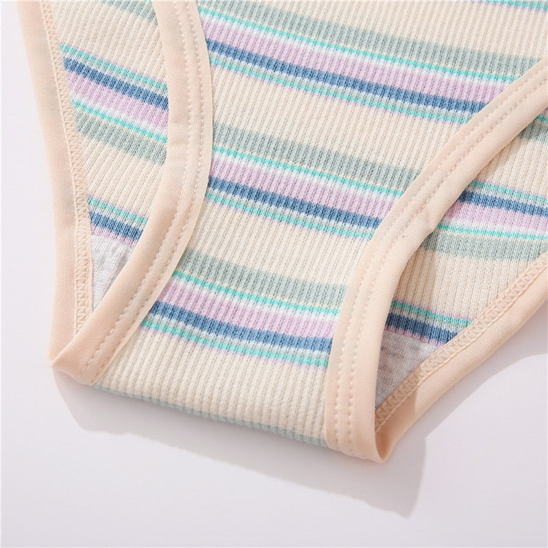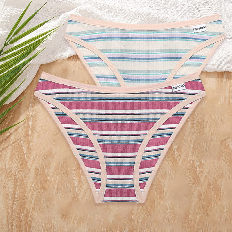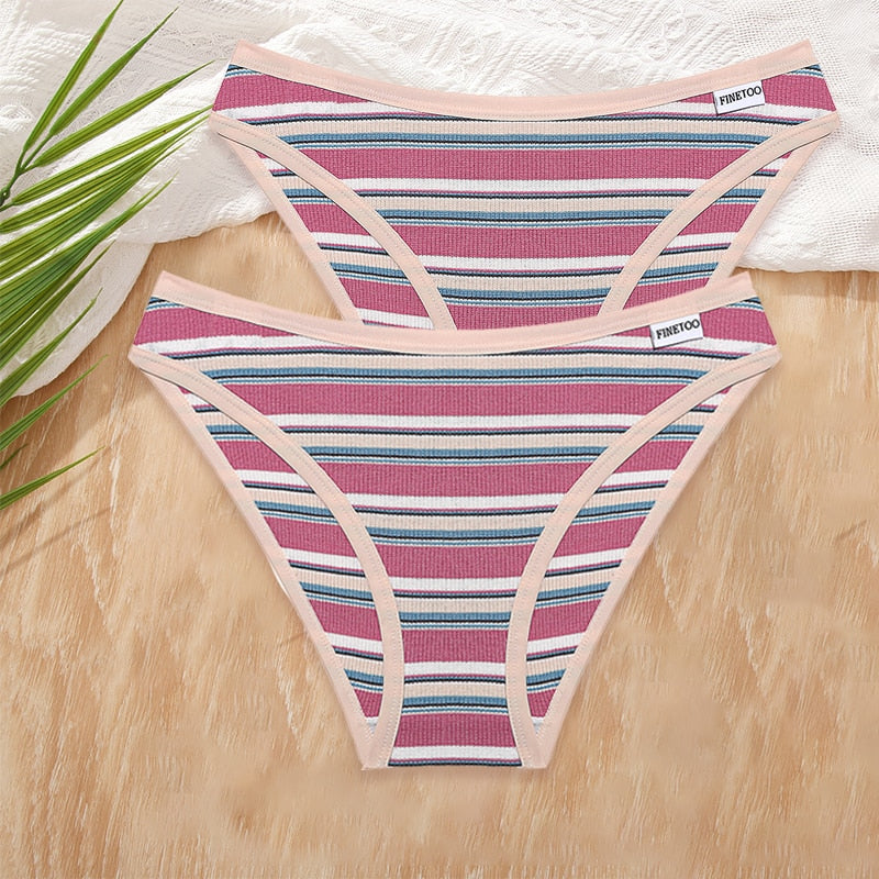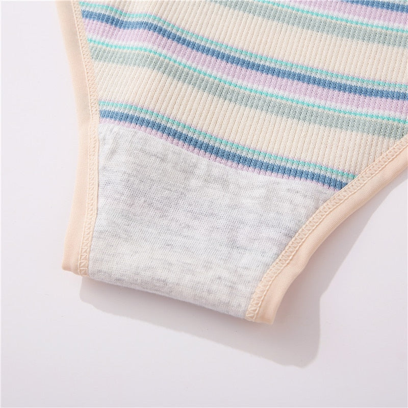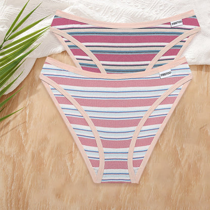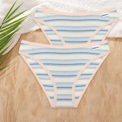 2 Pack Cotton Mix Panties Femme Colorful Striped Lingerie Briefs Underpant Ladies Underwear
