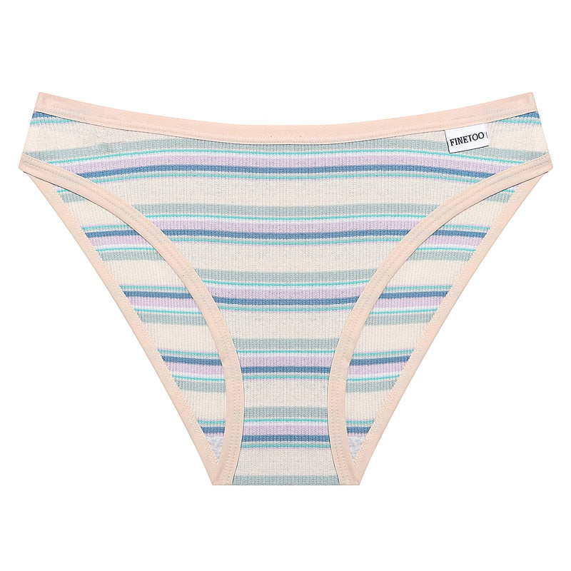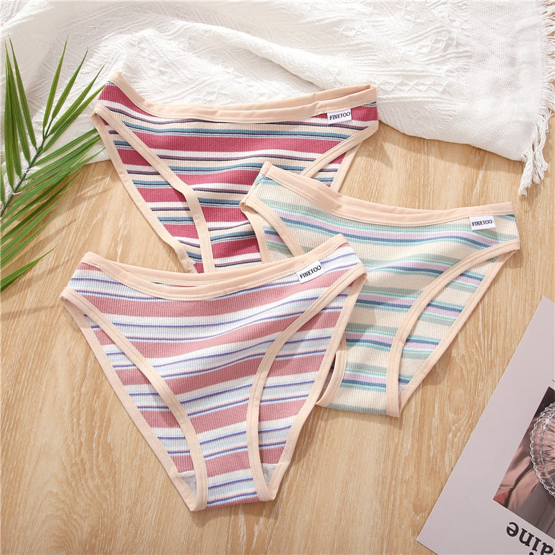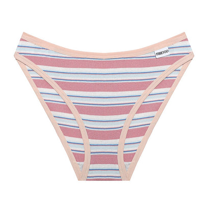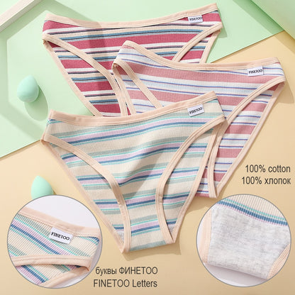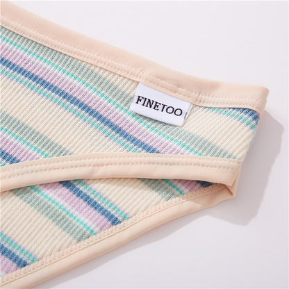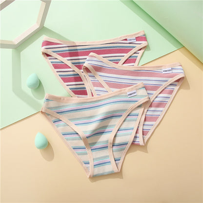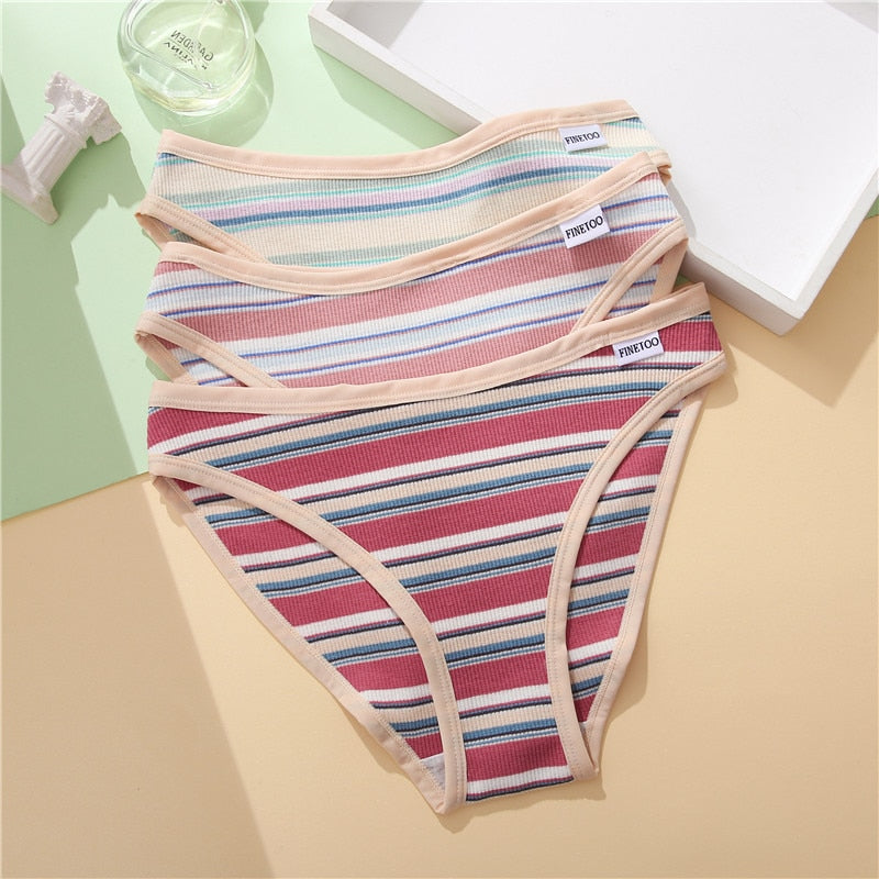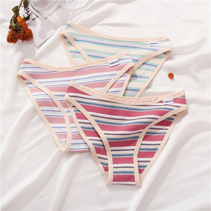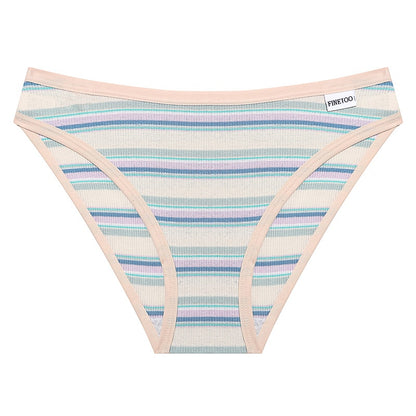 2 Pack Cotton Mix Panties Femme Colorful Striped Lingerie Briefs Underpant Ladies Underwear