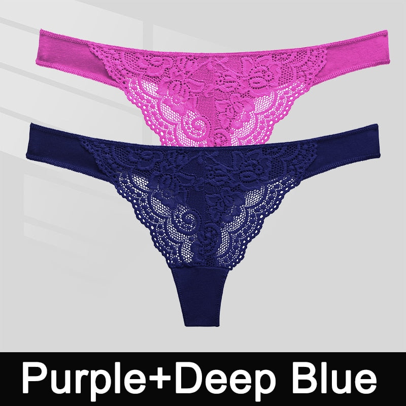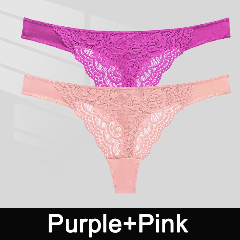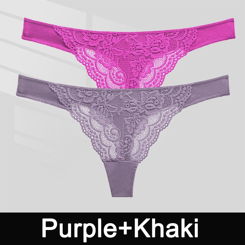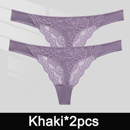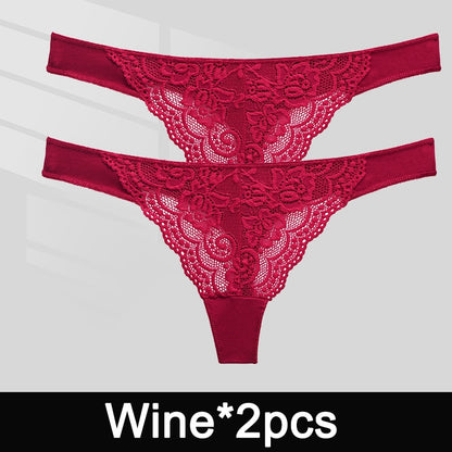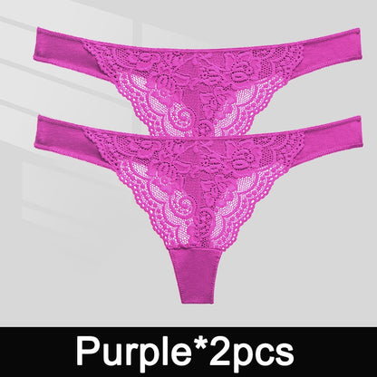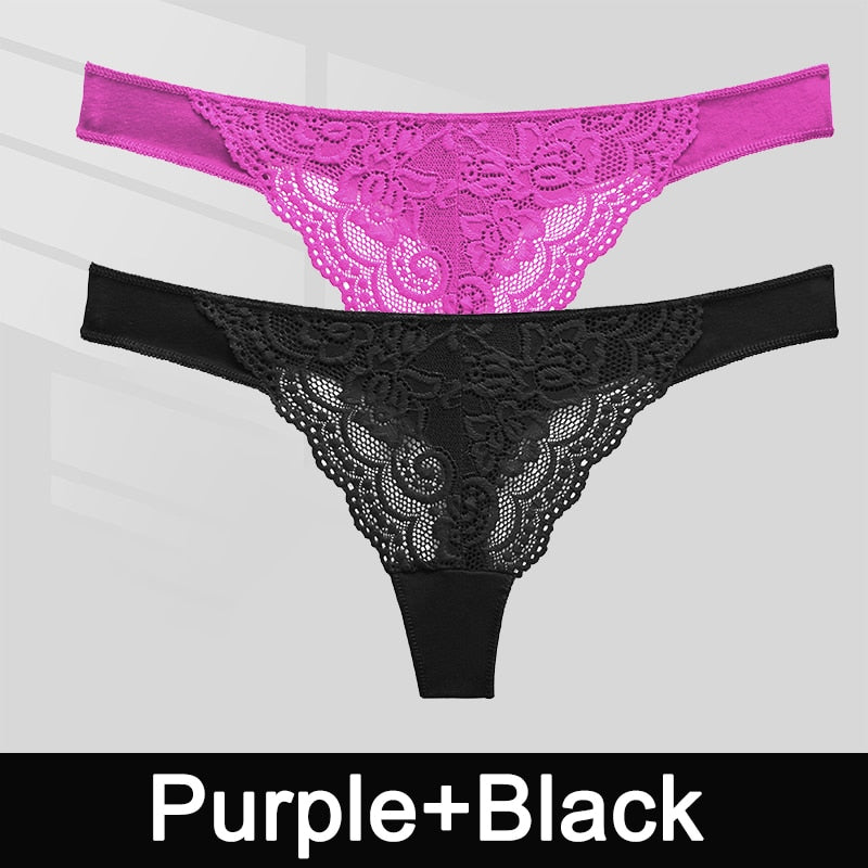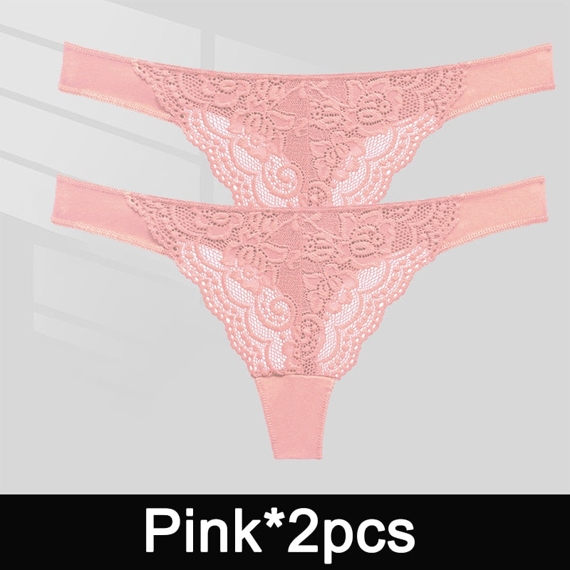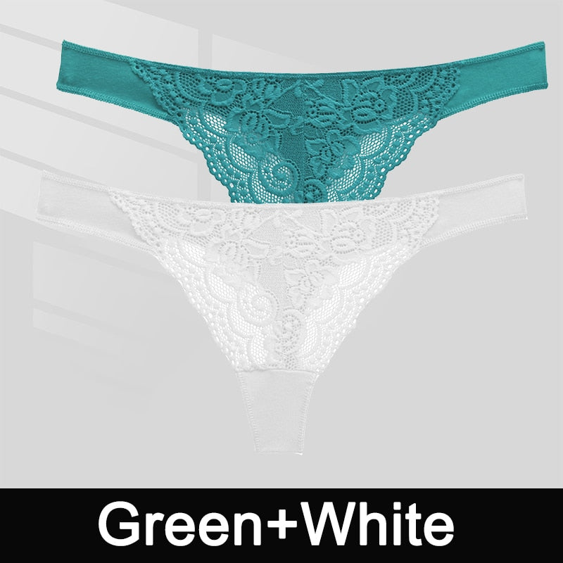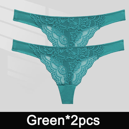 2 Pack Panties Lace Cotton G-String Underwear Lingerie Intimates Underpants Thong Pantys Set