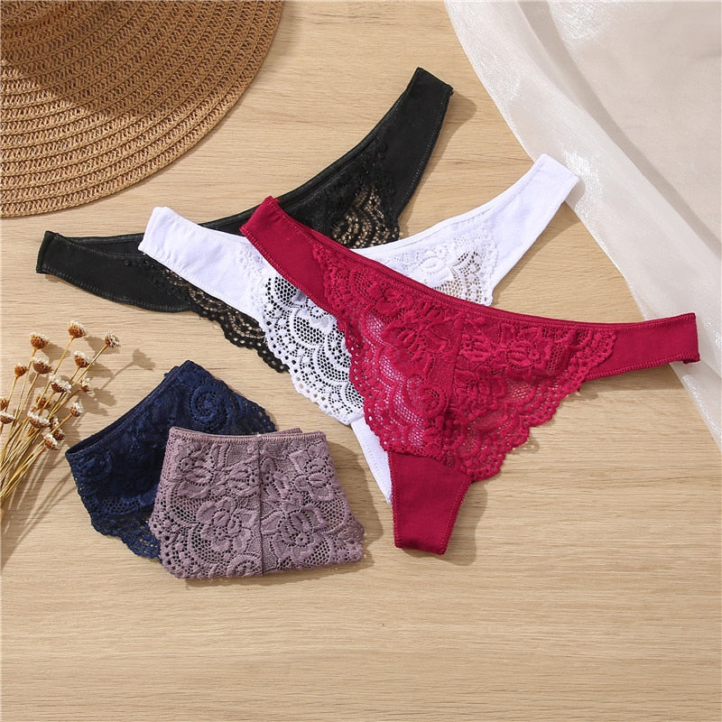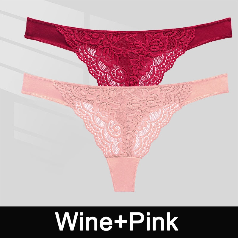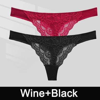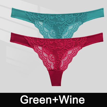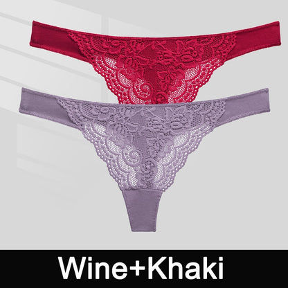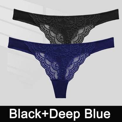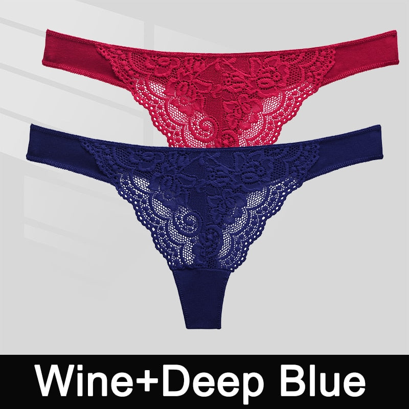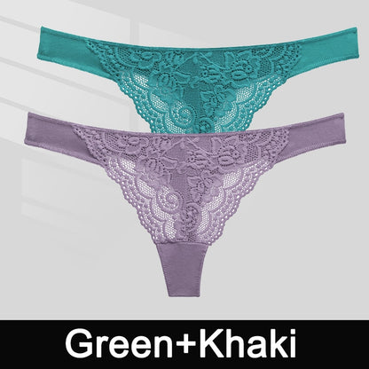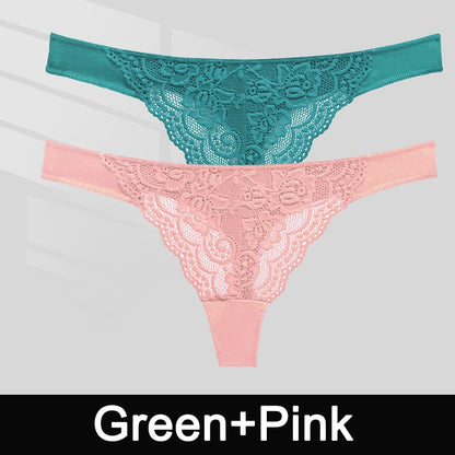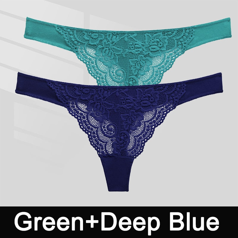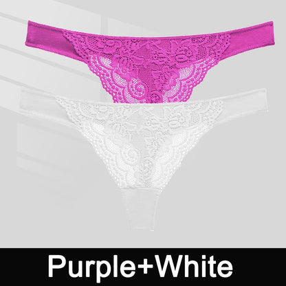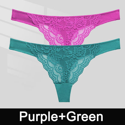 2 Pack Panties Lace Cotton G-String Underwear Lingerie Intimates Underpants Thong Pantys Set