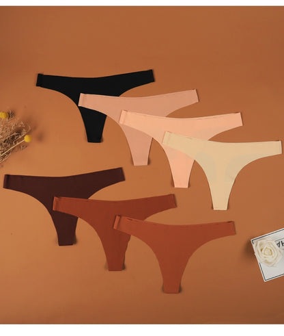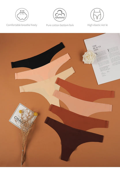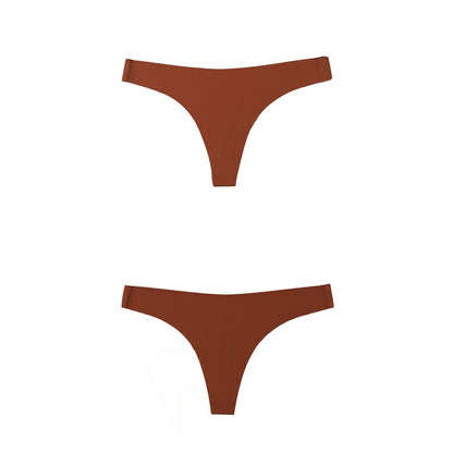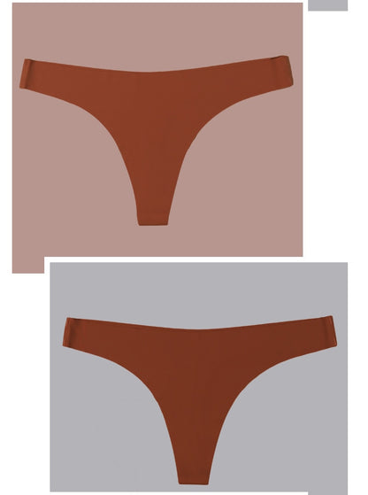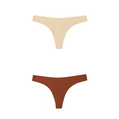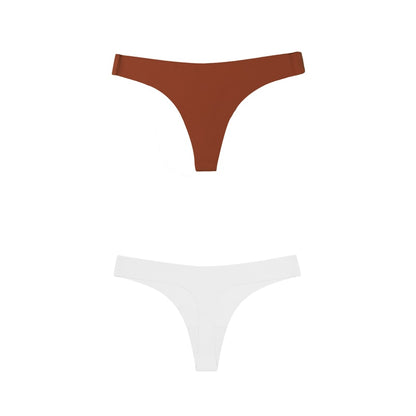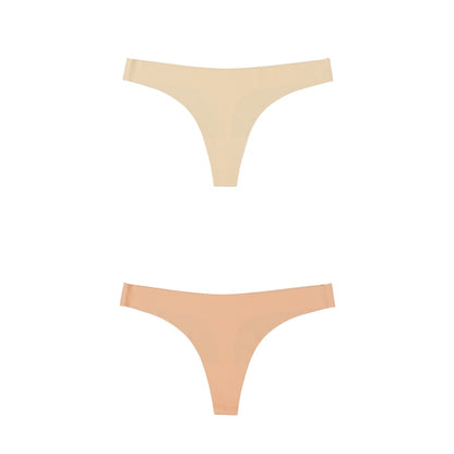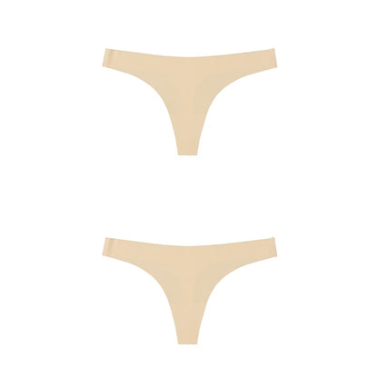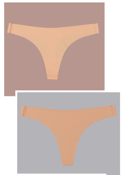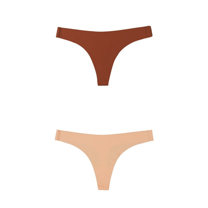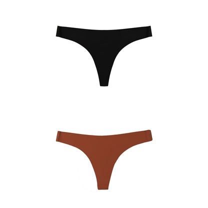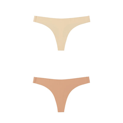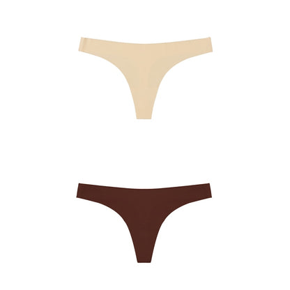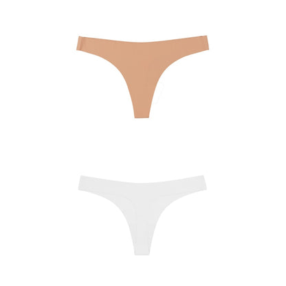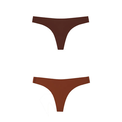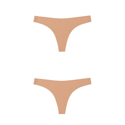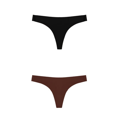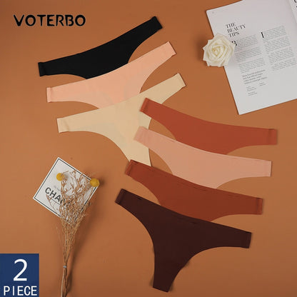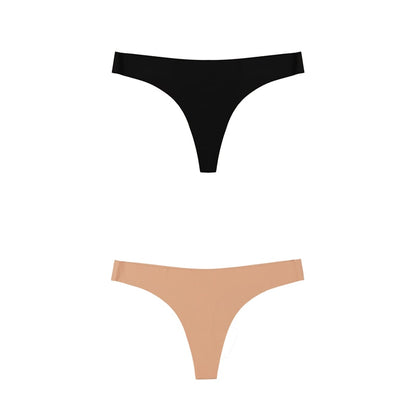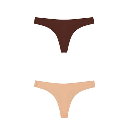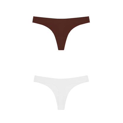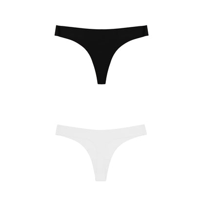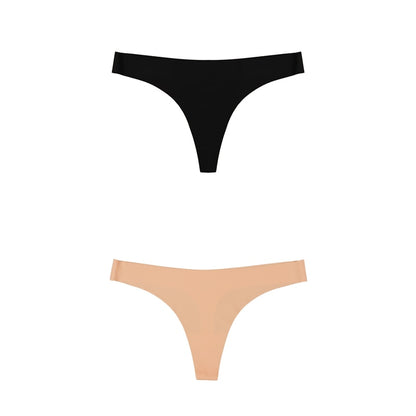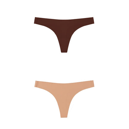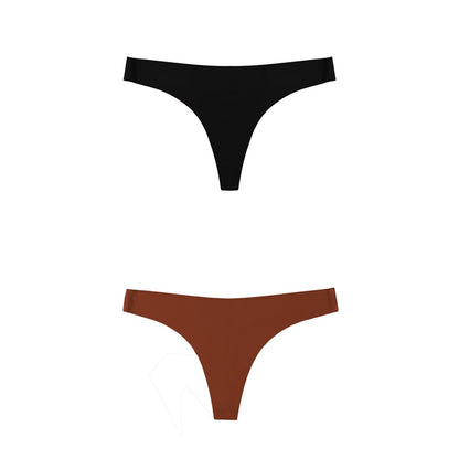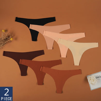 2 Pack Thong G-string Women Seamless Underwear Ice Silk Super Thin Breathable Low Waist Solid Briefs Panties Lingerie