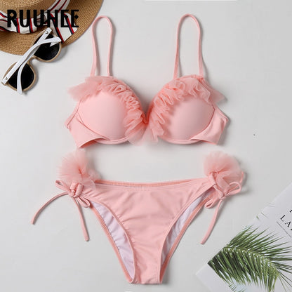 2 Piece Bandeau Bikini Swimwear Women Swimsuit Ruffle Bikini Set Push Up Bathing Suit Female Brazilian Leopard Swimsuit
