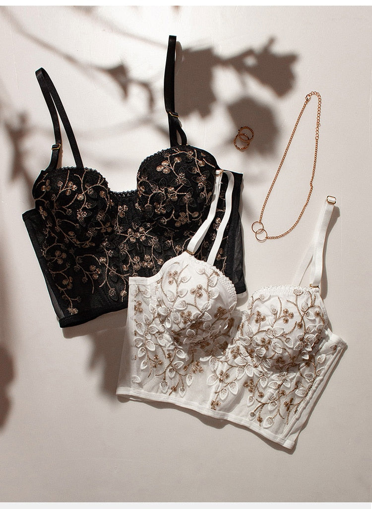 2 Piece Classic Women underwear Set Lace Push Up Bra And Panty Sets Embroidered Brassiere Adjustable Gathered Lingerie