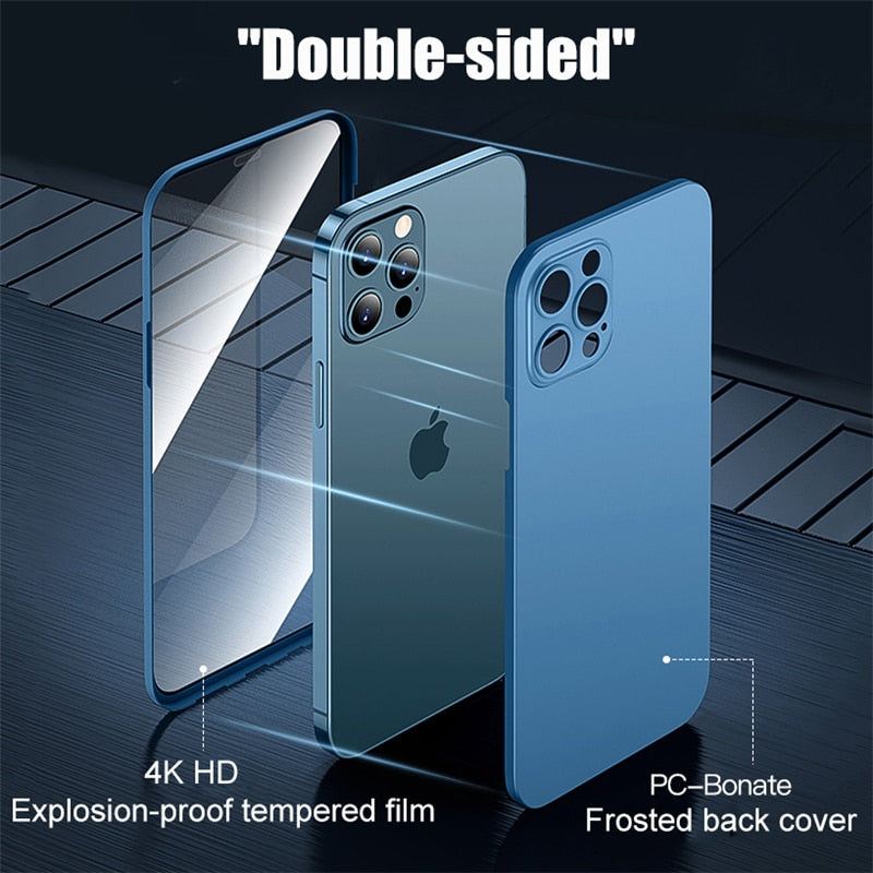 2 Piece Front Tempered Glass + Matte Back Cover For iPhone 12 13 Mini 11 Pro XS Max X XR 360 Full Protection Ultra Thin Shockproof Case