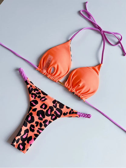 2 Piece Halter Micro Bikini Thong Swimsuit Women's Swimwear Bandage Brazilian Bathing Suit