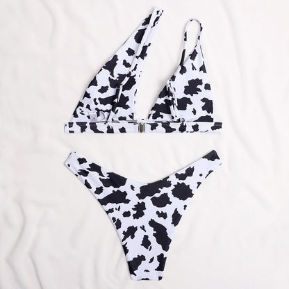 2 Piece Leopard Bikini Swimsuit One Shoulder Swimwear Micro Thong Bathing Suit Women Push Up Beachwear