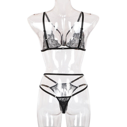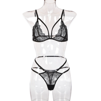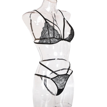 2 Piece Mesh Sheer Sexy Lingerie Spaghetti Strap Feather Patchwork Wear Cosplay