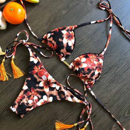 Pay in 4 instalments with AfterPay, Buy Now Pay Later2 Piece Micro Swimsuit Women Feather Print Swimwear Female Bathing Suit Bikini Set