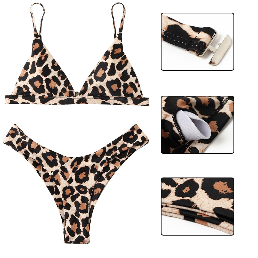 Pay in 4 instalments with AfterPay, Buy Now Pay Later2 Piece Micro Swimwear Women's Leopard Print High Cut Swimming Bathing Suit Sexy Swimsuit Brazilian Bikini Set