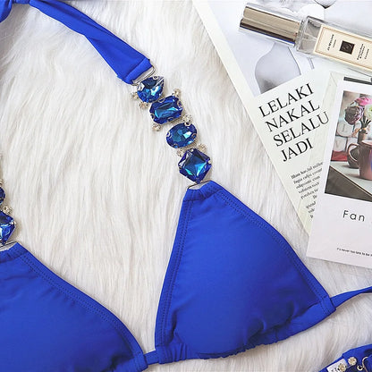 2 Piece Rhinestone Swimwear Thong String Bikini Set Summer Bathing Suit Beach Wear Swimsuit