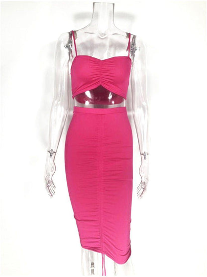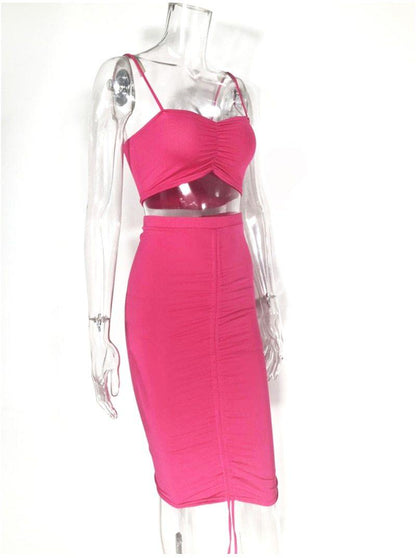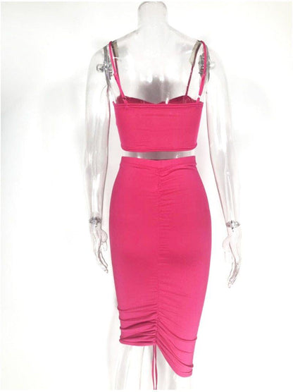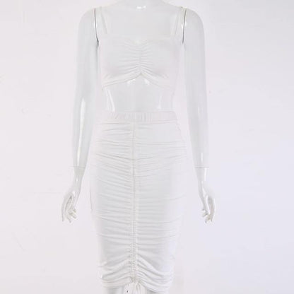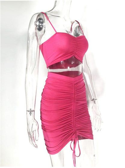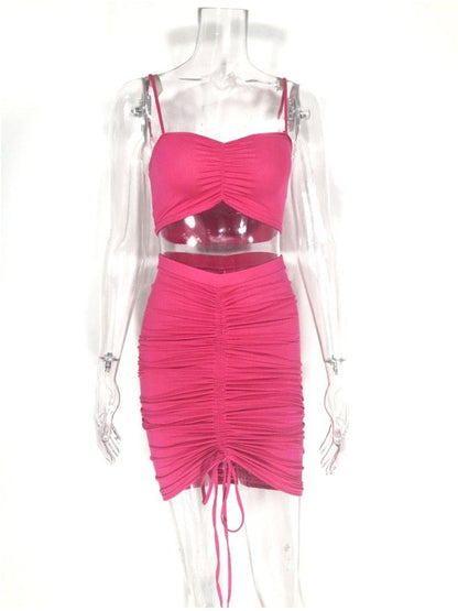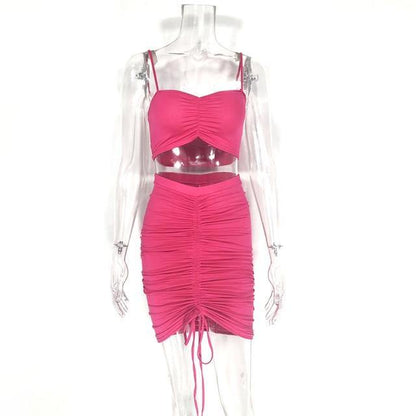 2 Piece Set Women Green Summer Outfits Ruched Tight Sexy Two Piece Set Crop Top And Skirt Set Club Wear Matching Sets