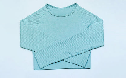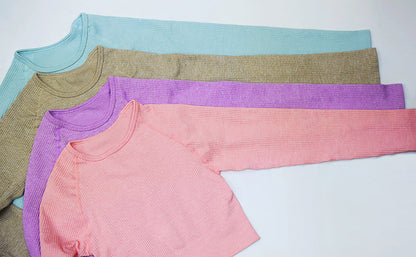 2 Piece Set Women Ribbed Seamless Long Sleeve Yoga Sets Workout Women's High Waist Sports Legging Long Sleeve Top