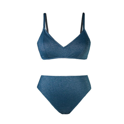 2 Piece Shiny Brick Red High Waist Bikini Sets Swimsuit V-neck Beachwear Swimwear