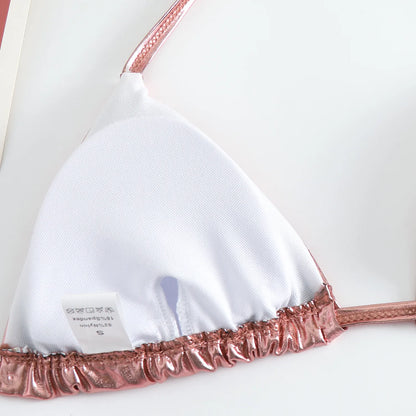2 Piece Shiny Triangle Micro Thong Bikinis Sets Swimsuit Mini Swimwear Bathing Swiming Suits