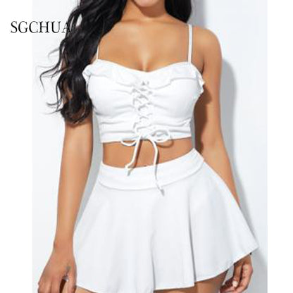 2 Piece Swimwear High Waist Swimsuit With Skrit Print Retro Vintage Bikini Set