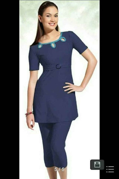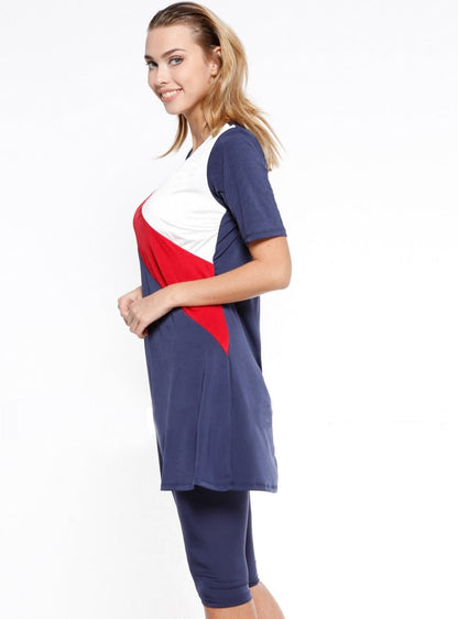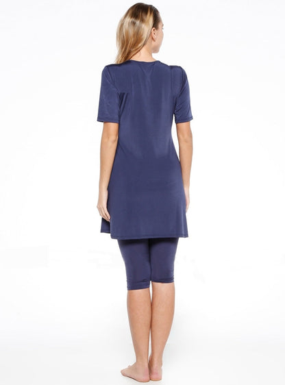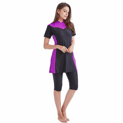 2 Piece Swimwear Conservative Swimming Suit short sleeve Top Knee Length Bottom Swimsuit