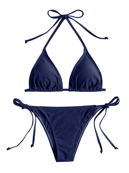 2 Piece Swimwear Thong Bikini Set Navy Blue Swimsuits Womens Bathing Suits Bikinis Triangle Bandage Female Beachwear