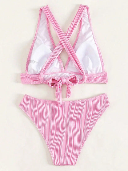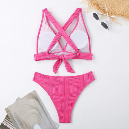 2 Piece Wrinkled Crinkled Bikini Swimwear Swimsuit Bikini Set High Cut BeachWear