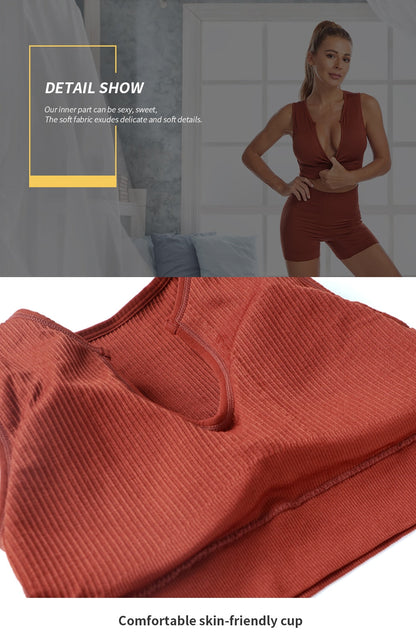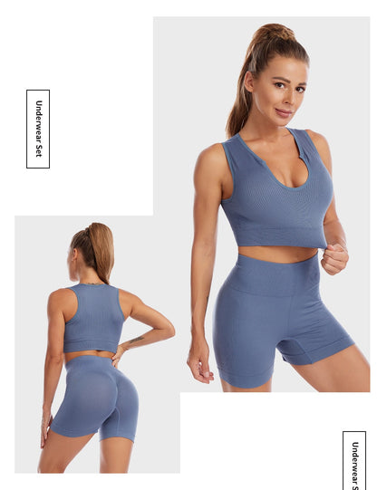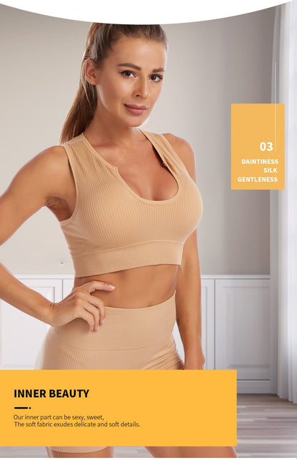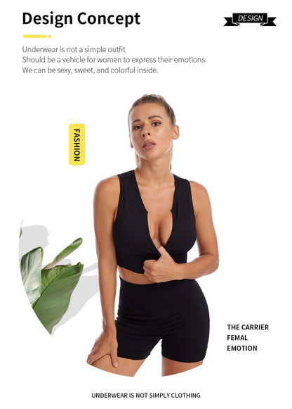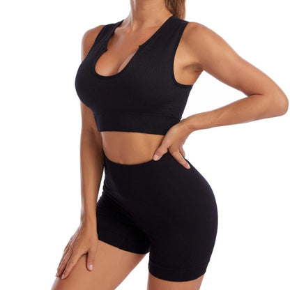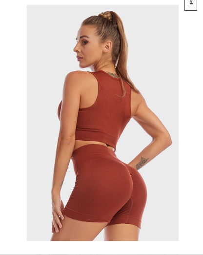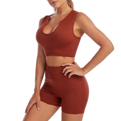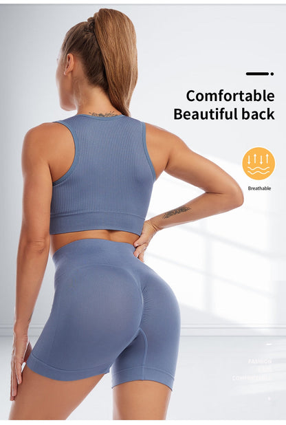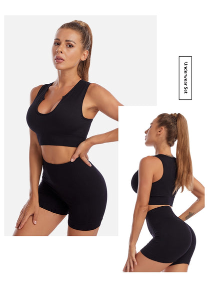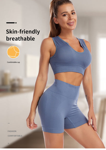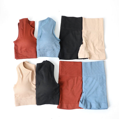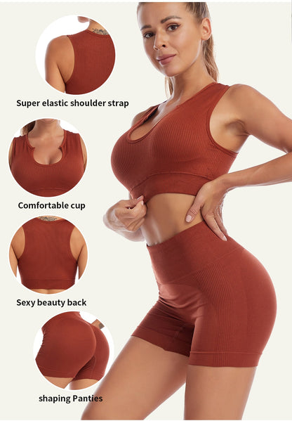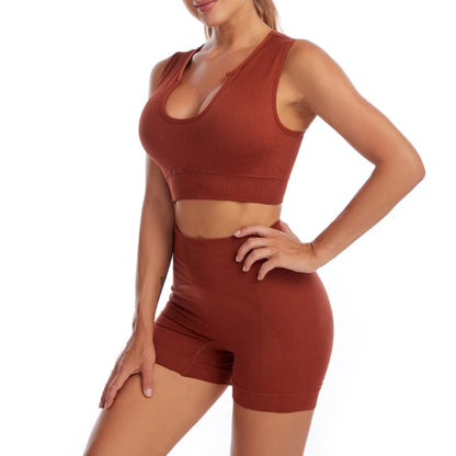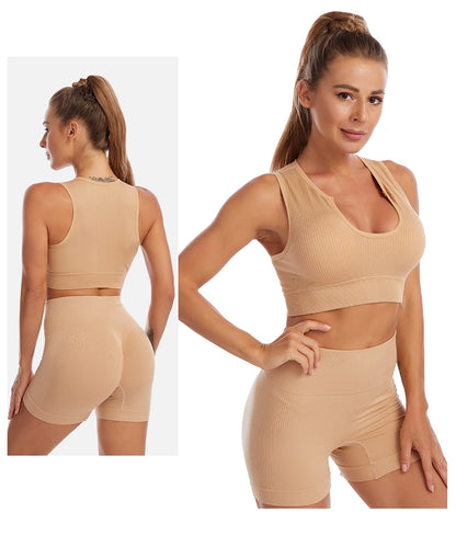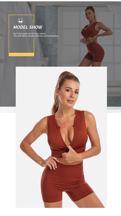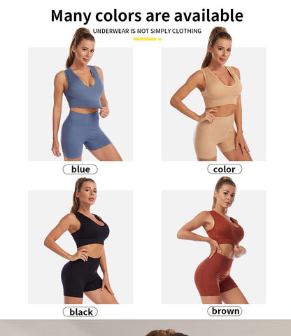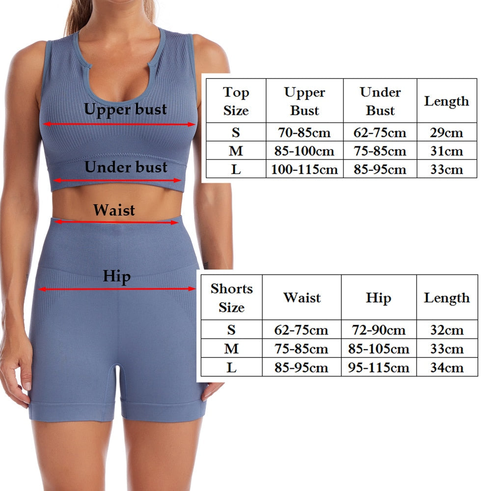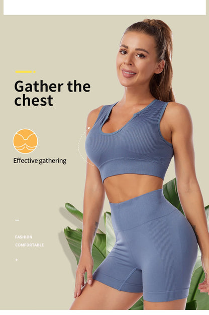 2 Piece Yoga Set Gym Set Workout Seamless Leggings Sports Bra Suit Female Clothing High Waist Shorts Set