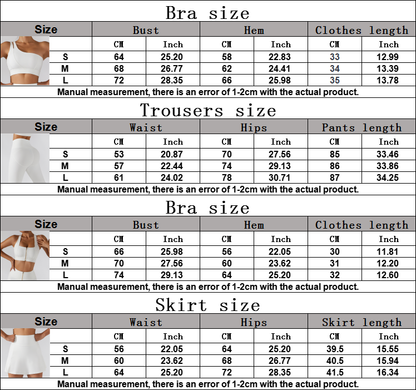 • Two-Piece Set: Includes a front-zipper crop top and high-waisted leggings with skirt overlay