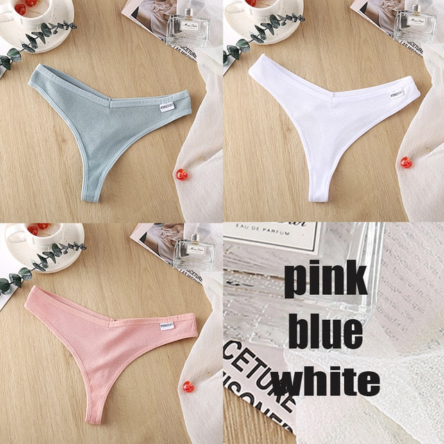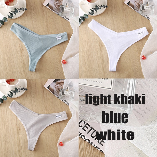 3 Pack 8 Colors Thong G-String Cotton Mix Thongs Panties V Waist Underpants Pantys Lingerie