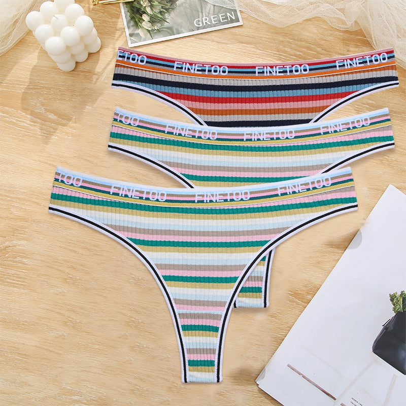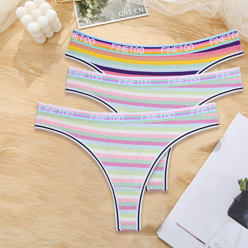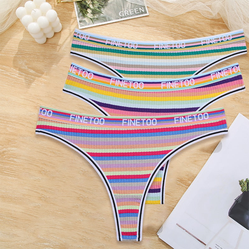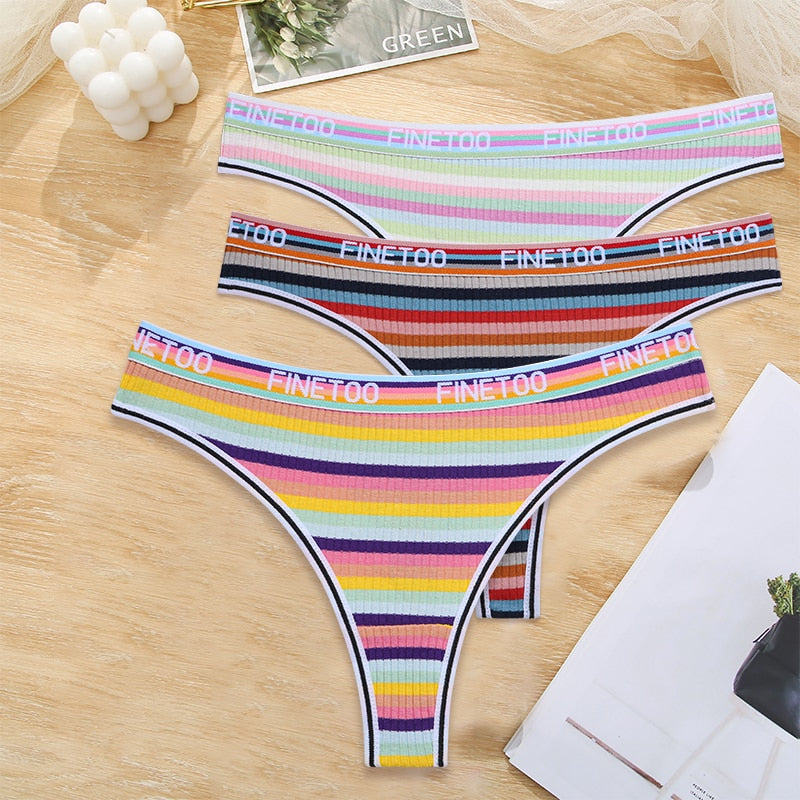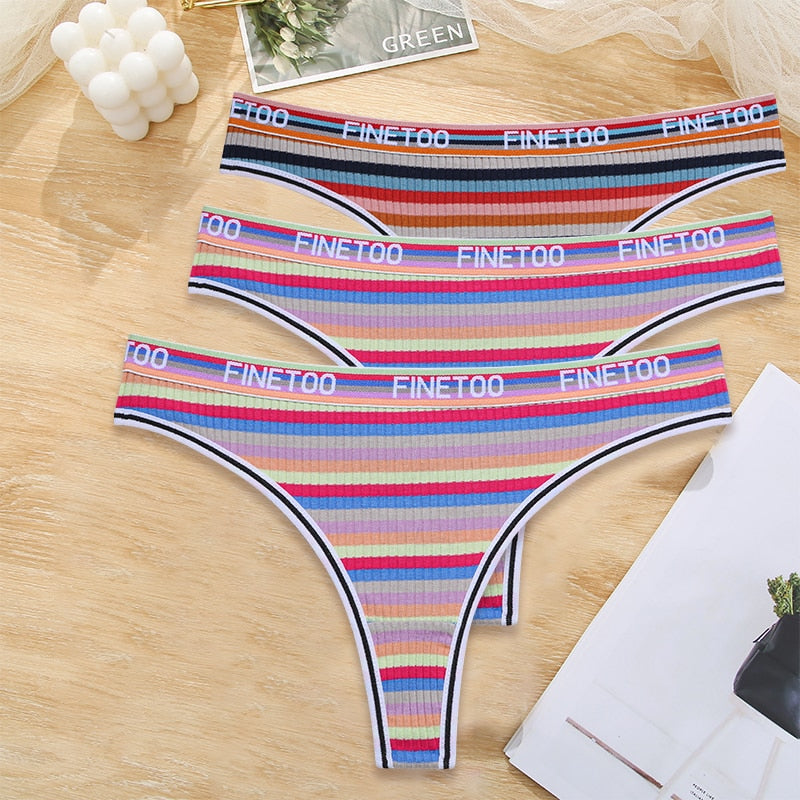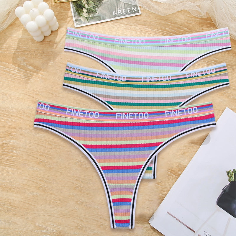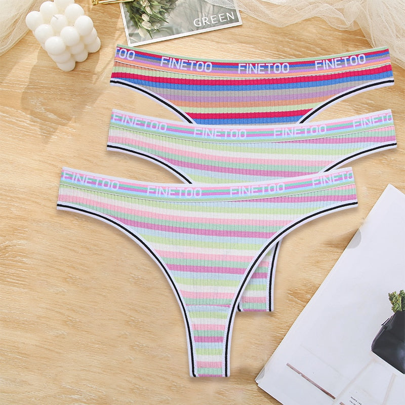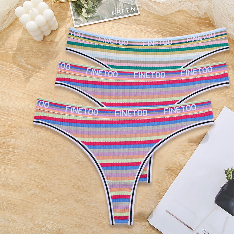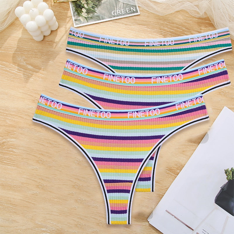 Pay in 4 instalments with AfterPay, Buy Now Pay Later3 Pack Cotton Mix Seamless G-string Colorful Striped Lingerie Panties S-XL Thongs Female Letter Waist Underwear Briefs