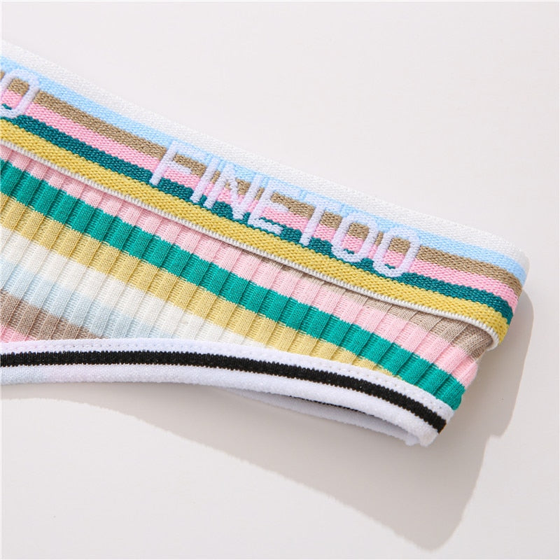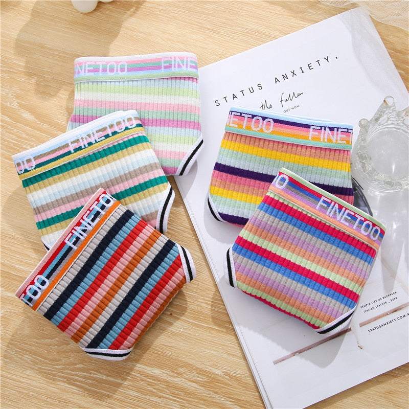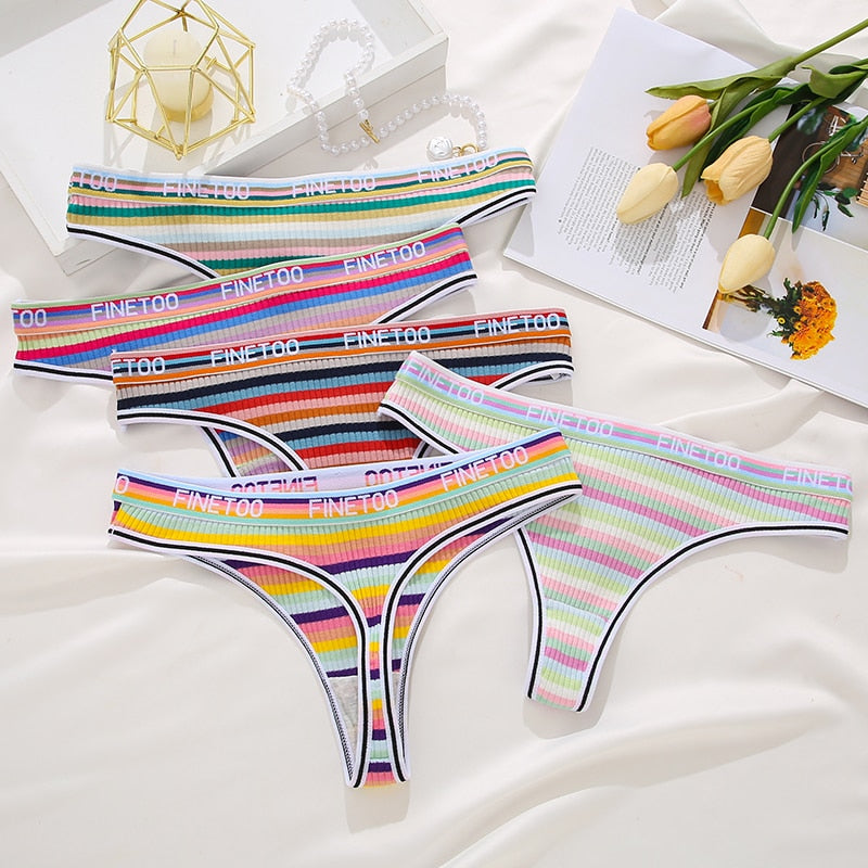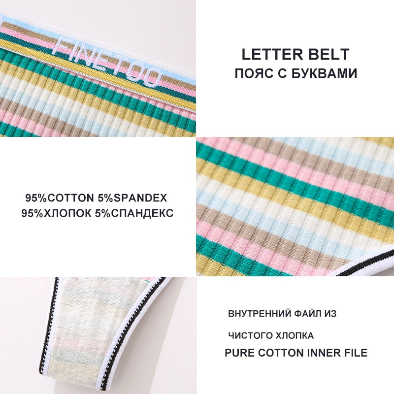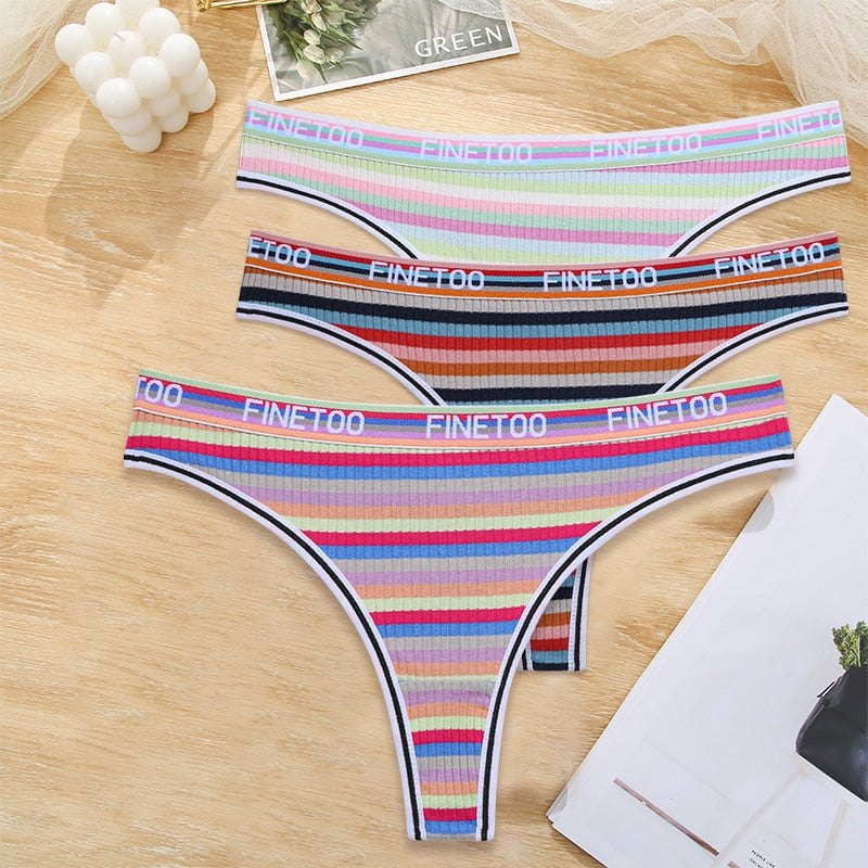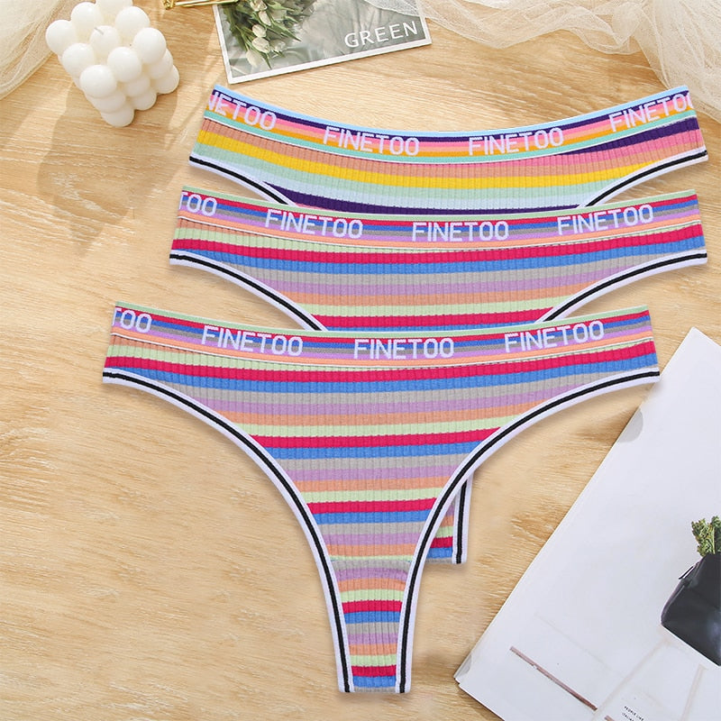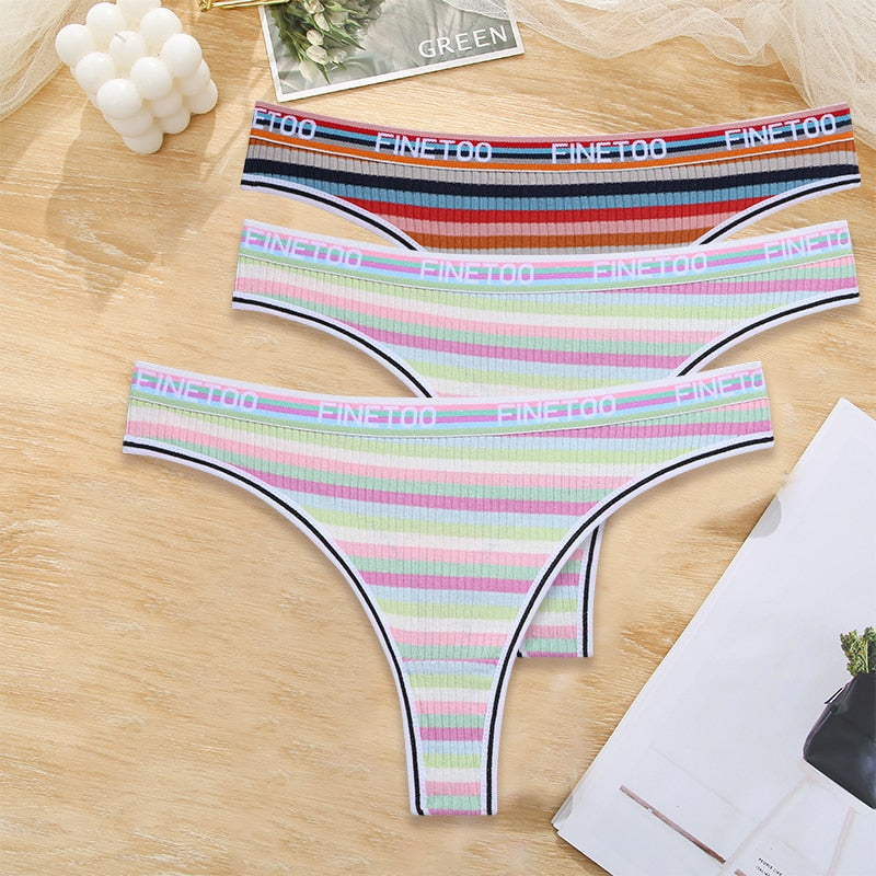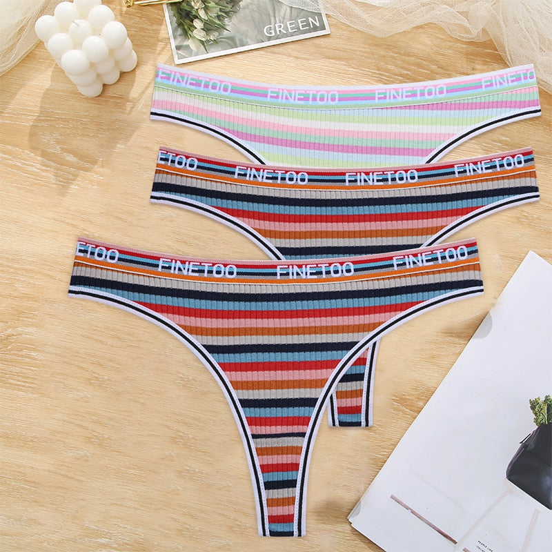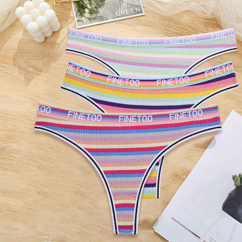Pay in 4 instalments with AfterPay, Buy Now Pay Later3 Pack Cotton Mix Seamless G-string Colorful Striped Lingerie Panties S-XL Thongs Female Letter Waist Underwear Briefs