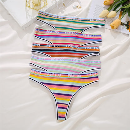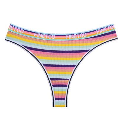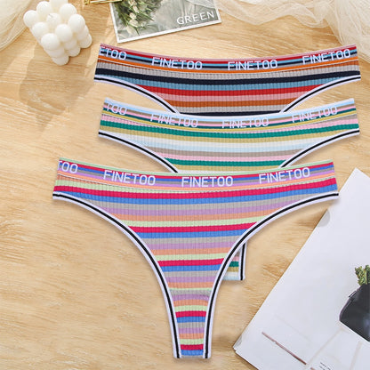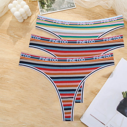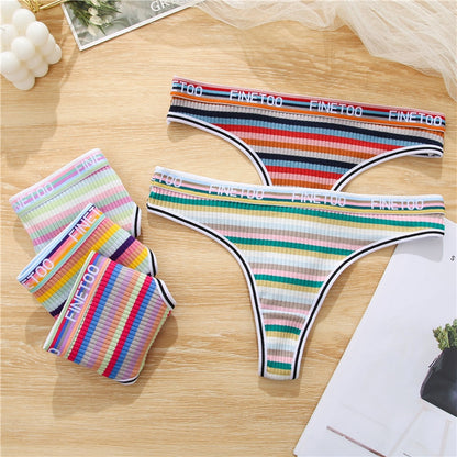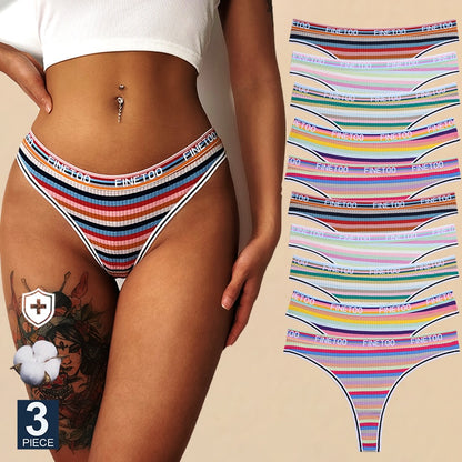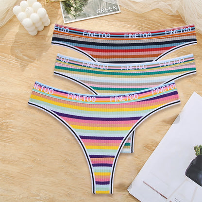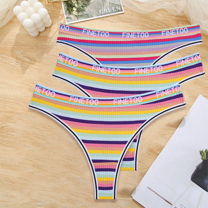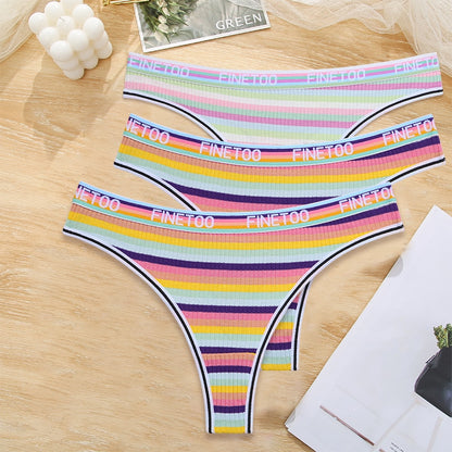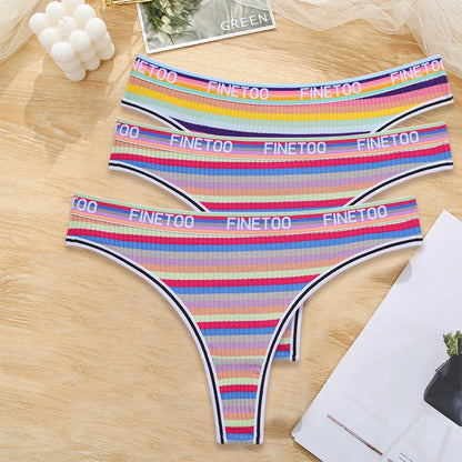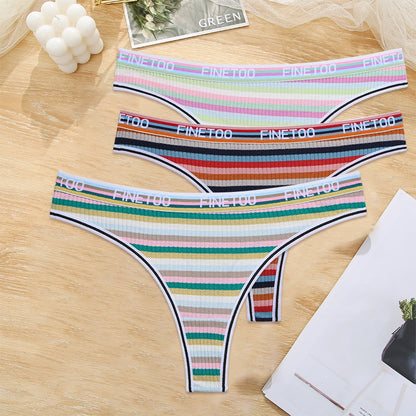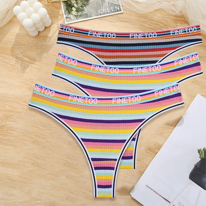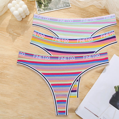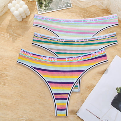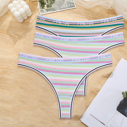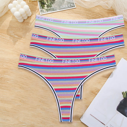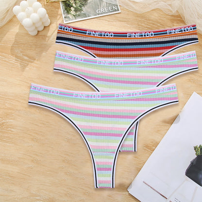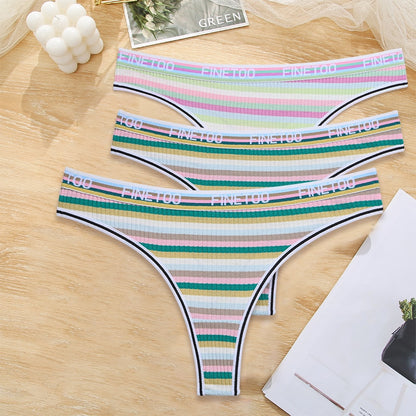 3 Pack Cotton Mix Seamless G-string Colorful Striped Lingerie Panties S-XL Thongs Female Letter Waist Underwear Briefs