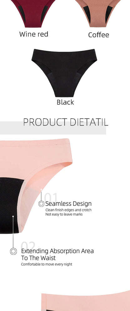 Pay in 4 instalments with AfterPay, Buy Now Pay Later3 Pack Seamless Cotton Menstrual Panties 4-Layer Leakproof Fast Absorption Period Panties Mid-Rise Incontinence Underwear