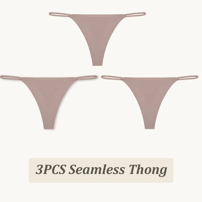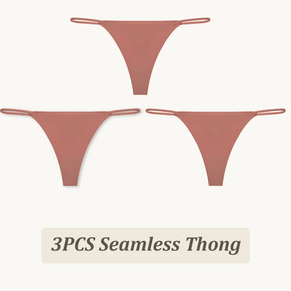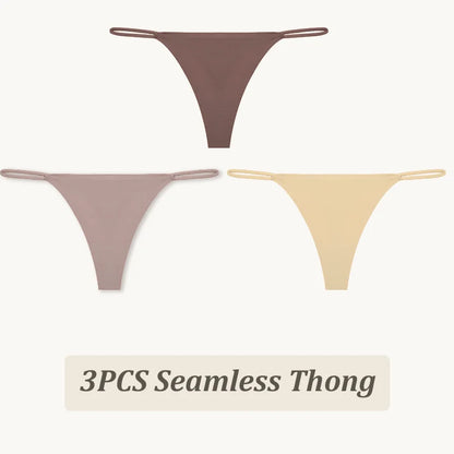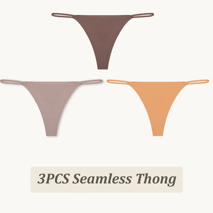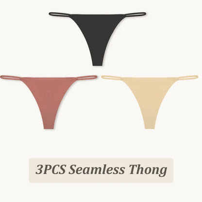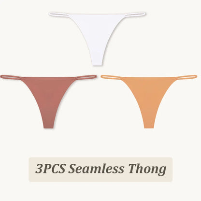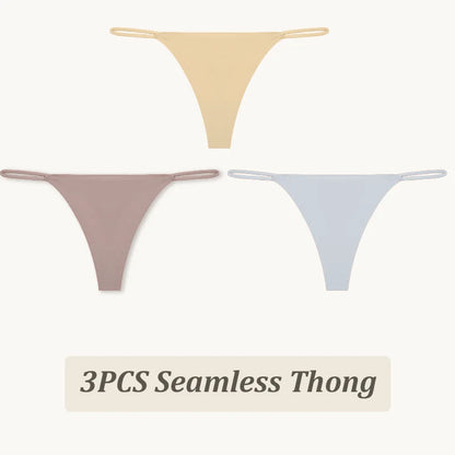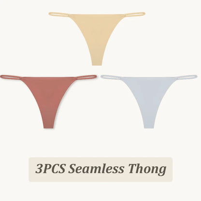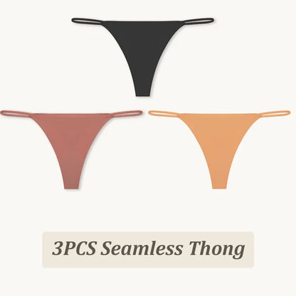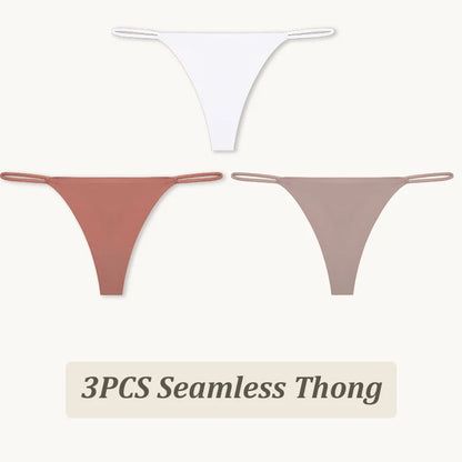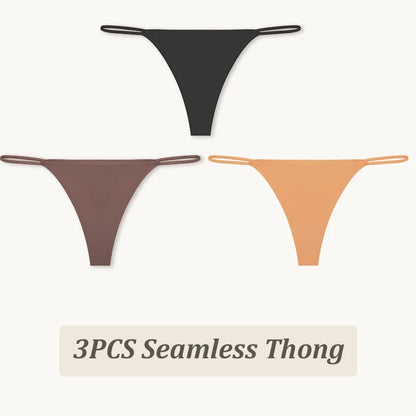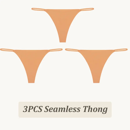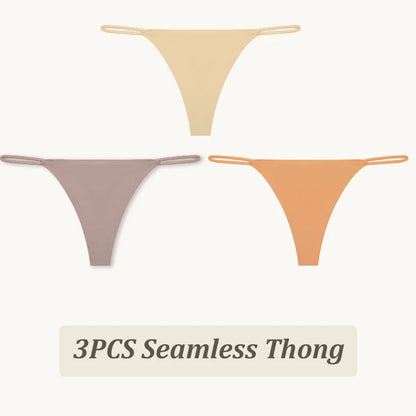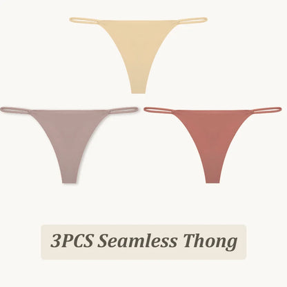 3 Pack Seamless Thong Women Thin Strap Low Waist High Flexibility Panties Briefs T-back Comfortable Underwear