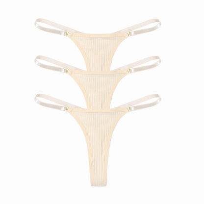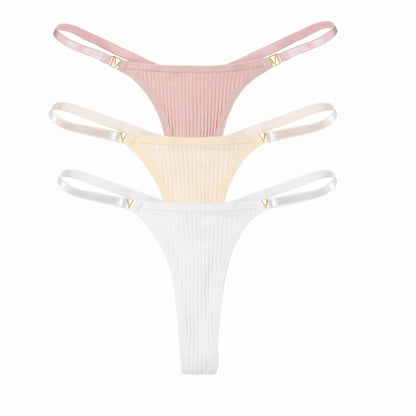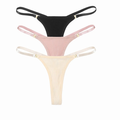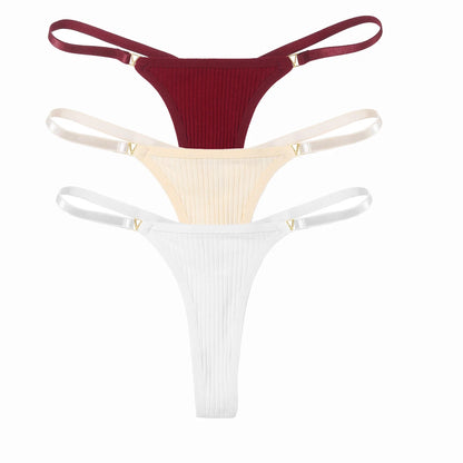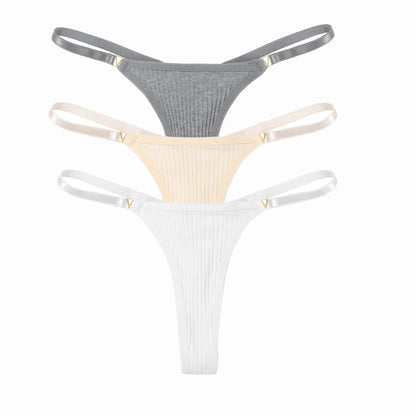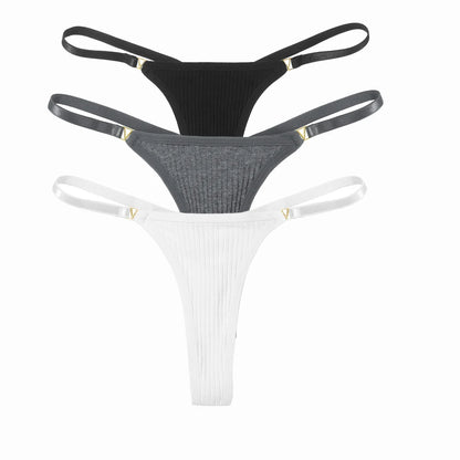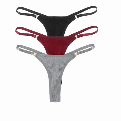 3 Pack Set Women's Panties Cotton Thongs Low Rise G String Solid Color Seamless Female Underpants Lingerie Underwear