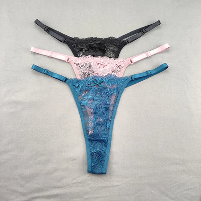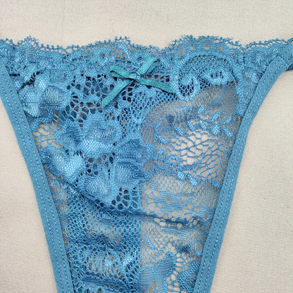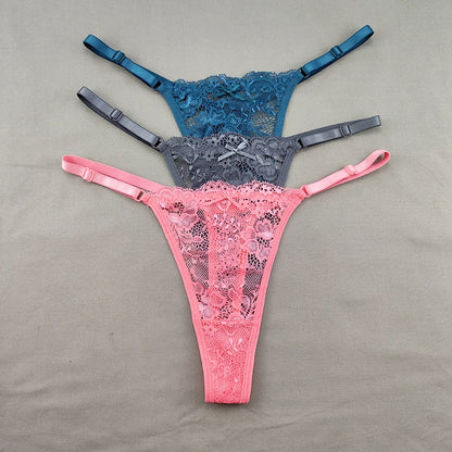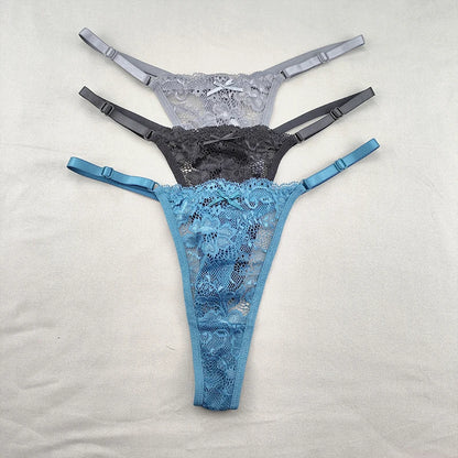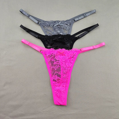 3 Pack Women's Lace Hollow Out Thongs Thin Sheer G-Strings Ultra-low Rise Seamless Panties Perspective Bow Knickers