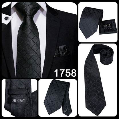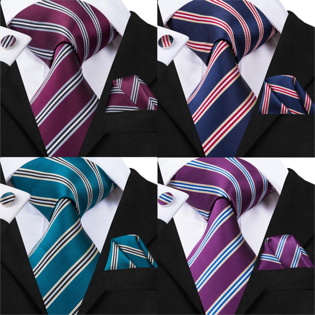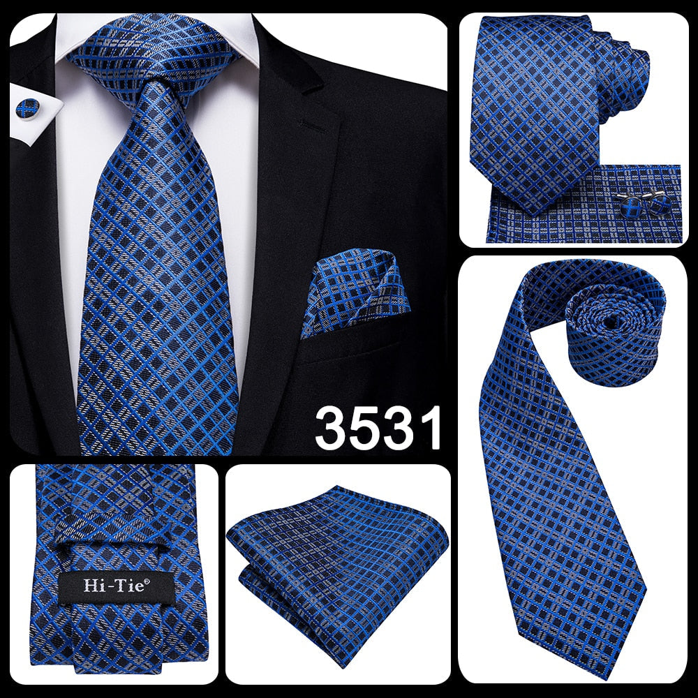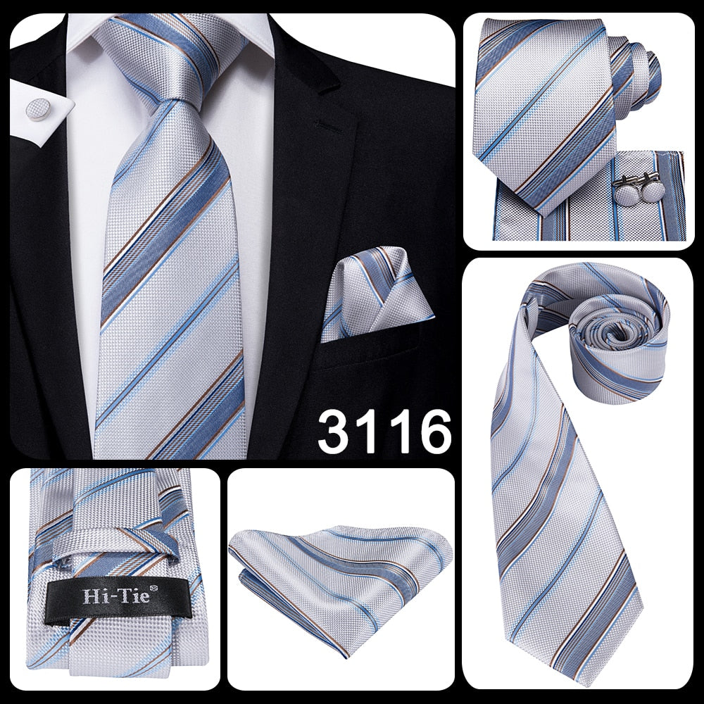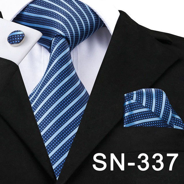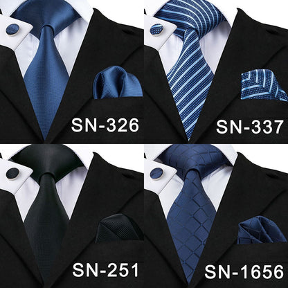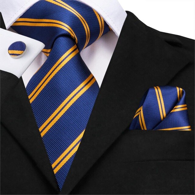 Pay in 4 instalments with AfterPay, Buy Now Pay Later3 Piece Business Classic Blue Black Striped Solid Men's 3.4" Brand Necktie Pocket Square Cufflinks Wedding Party Silk Tie Set