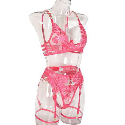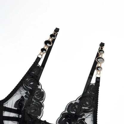 3 Piece Lingerie Luxury Jewel Shoulder Strap Underwear Garter Lace IntimateLingerie Set