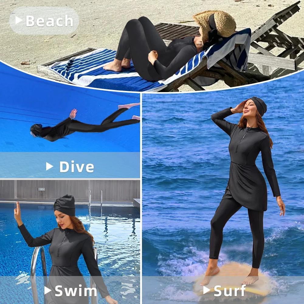 Pay in 4 instalments with AfterPay, Buy Now Pay Later3 Piece Swimwear Women Full Length Patchwork Long Sleeves Sports Bathing Suit Quick Drying Swimsuit