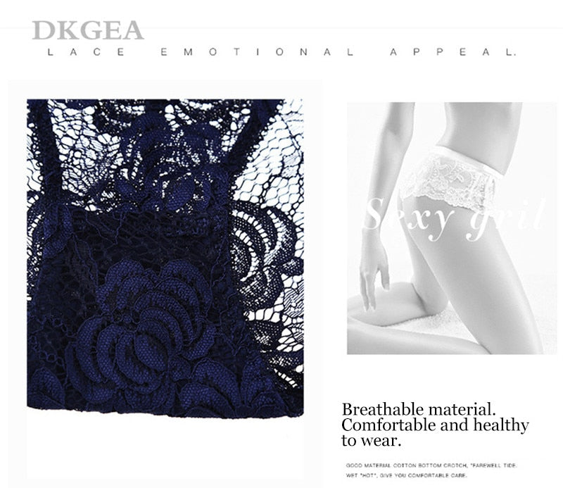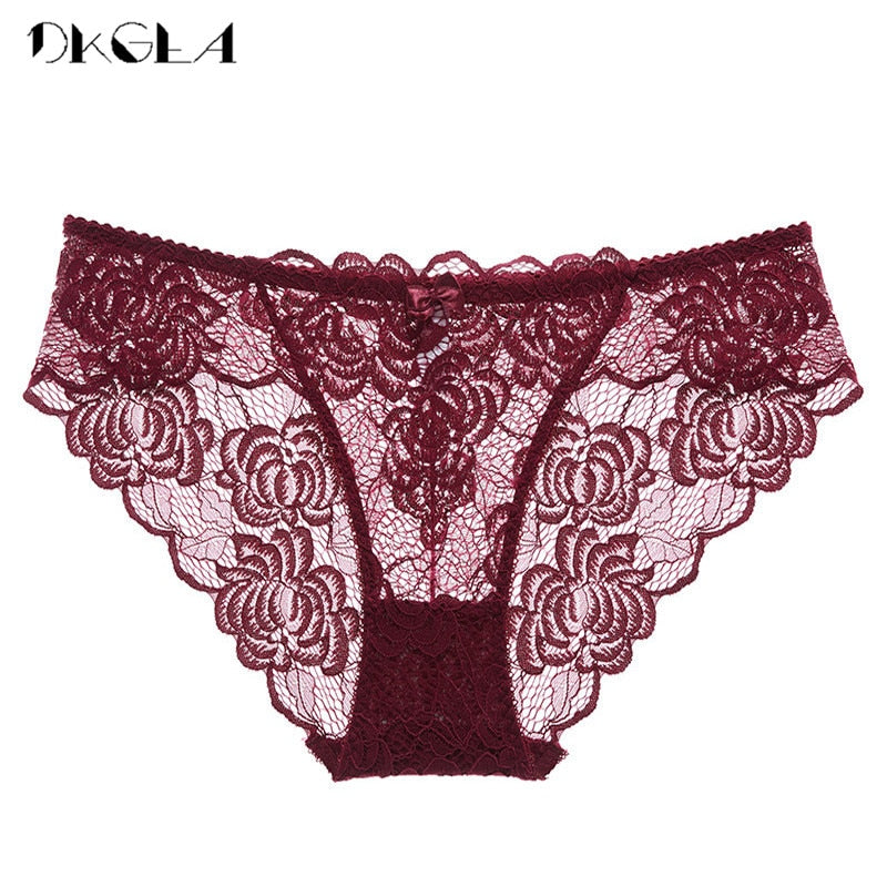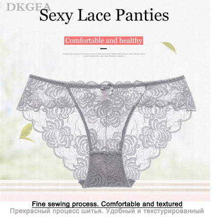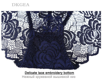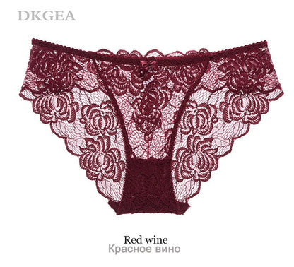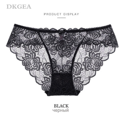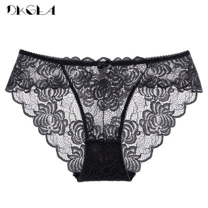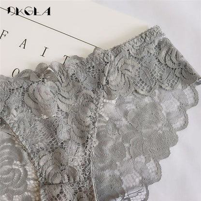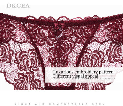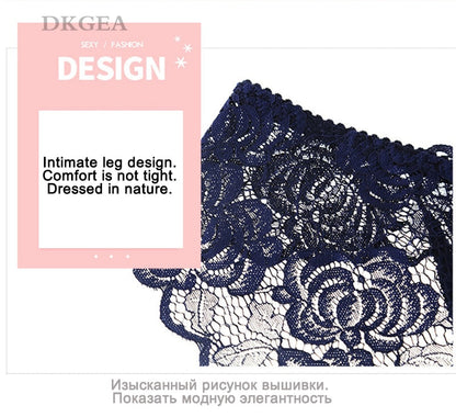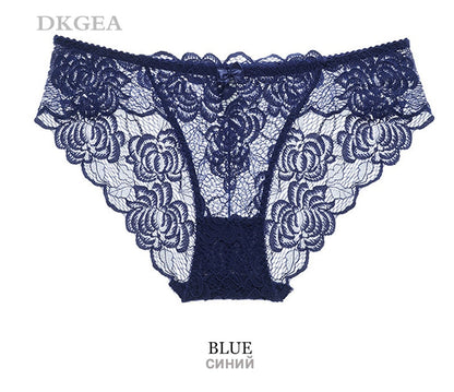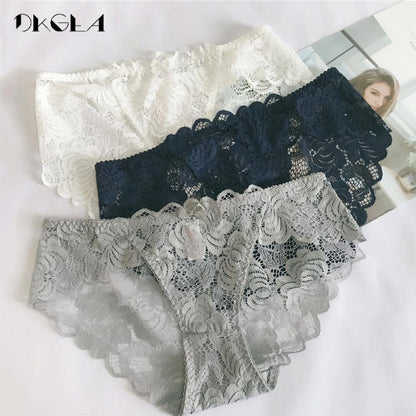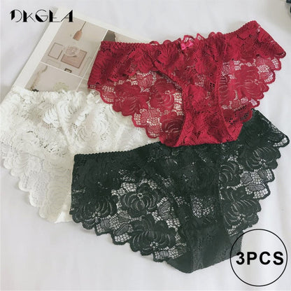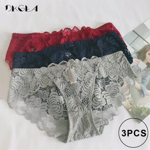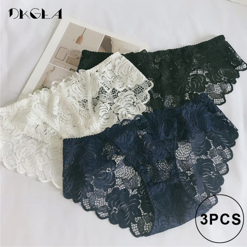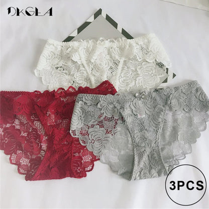 3 Piece Lace Underwear Plus Size Low rise Transparent Embroidered Panties