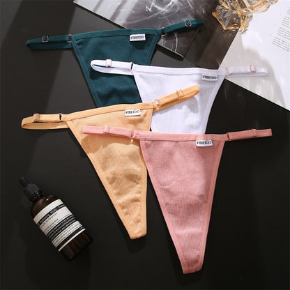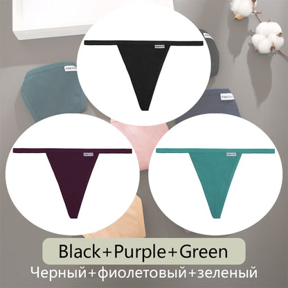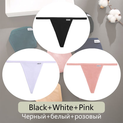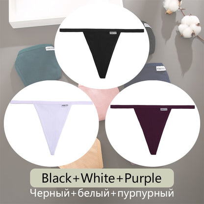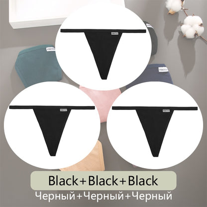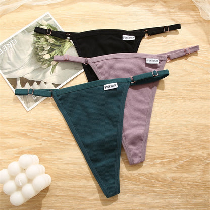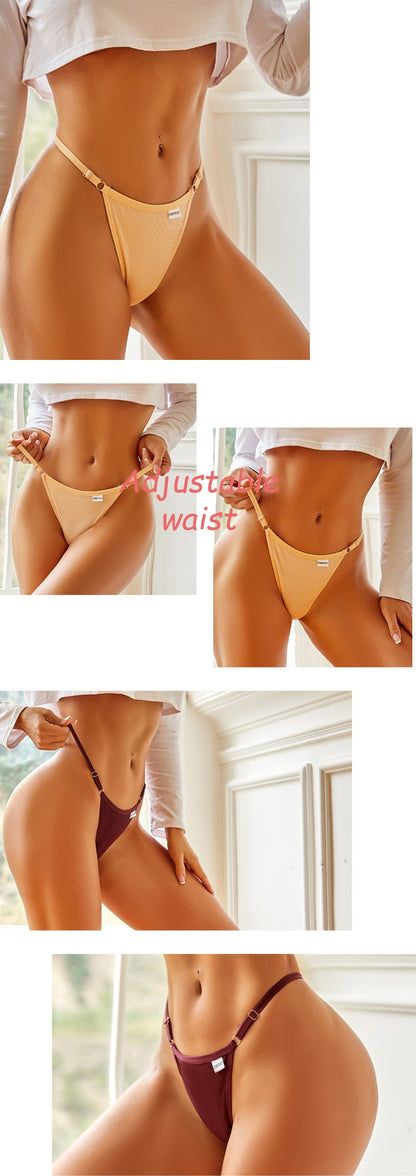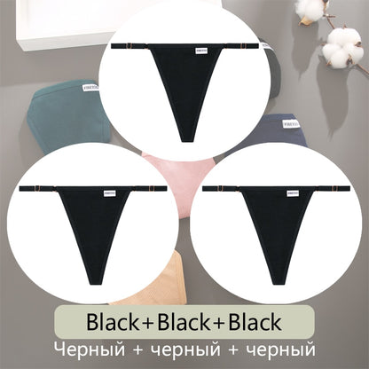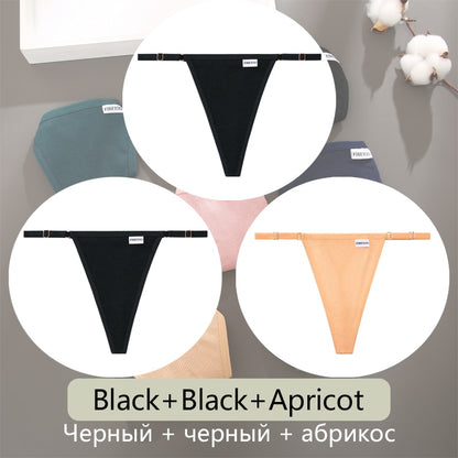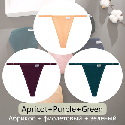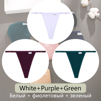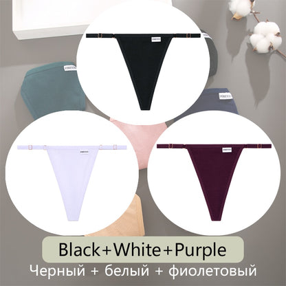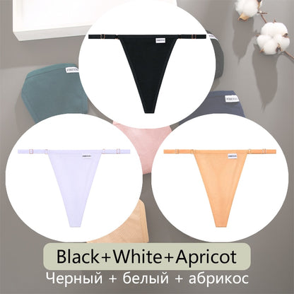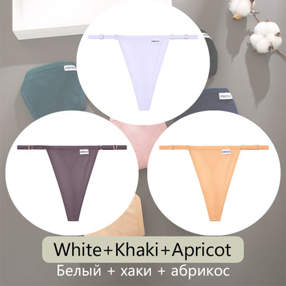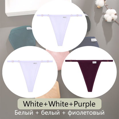 3 Piece Women's Cotton Mix Panties Low Rise Adjustable Waist G-String Thongs Seamless Bikini Underwear Lingerie