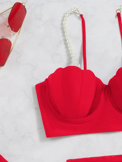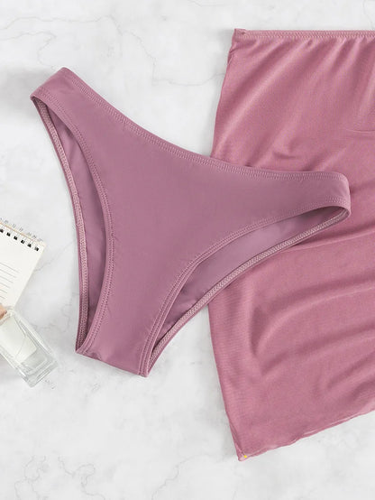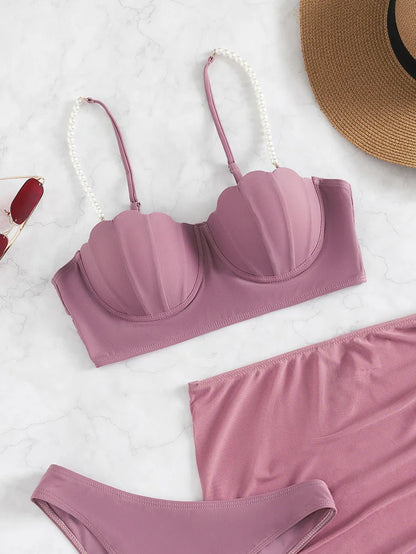 3 Piece Women's Swimsuit Off Shoulder Suspender Pure Cotton Fashion Backless Beach Split Swimwear