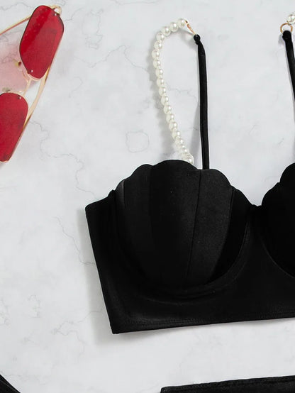 Pay in 4 instalments with AfterPay, Buy Now Pay Later3 Piece Women's Swimsuit Off Shoulder Suspender Pure Cotton Fashion Backless Beach Split Swimwear