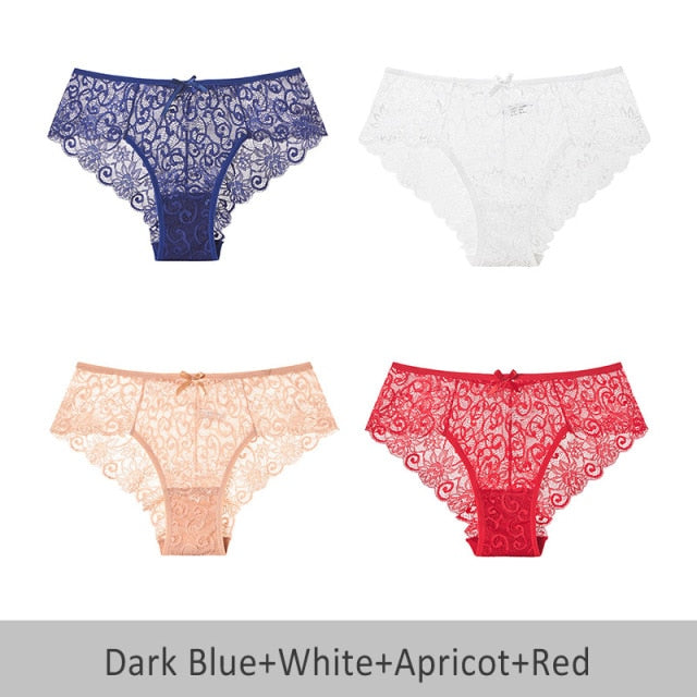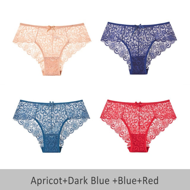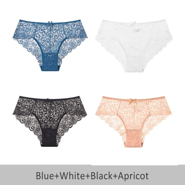 4 Pack Mid-rise Underwear High-end Lace Panties Briefs