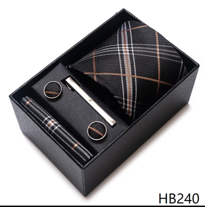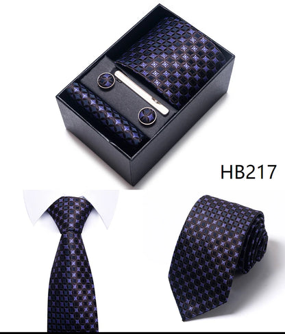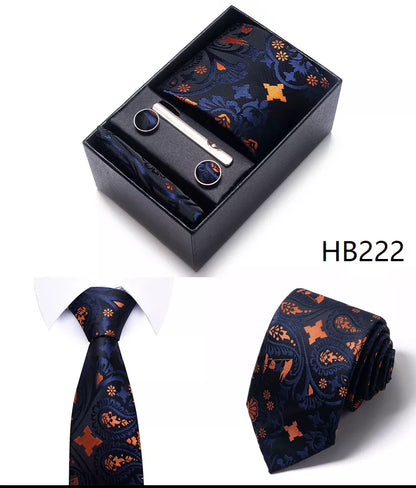 4 Piece Tie Handkerchief Cufflink Set For Men Necktie Holiday Gift Box Blue Gold Suit Accessories Slim Wedding Set