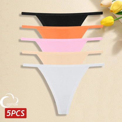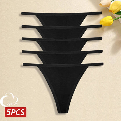 5 Pack Women's Cotton Panties Underwear Low Waist G-String Thongs Breathable Lingerie Set