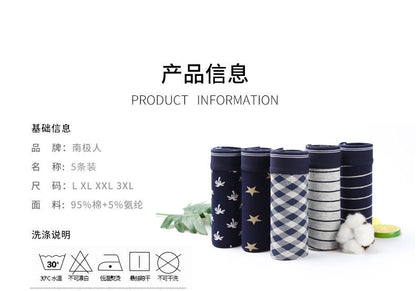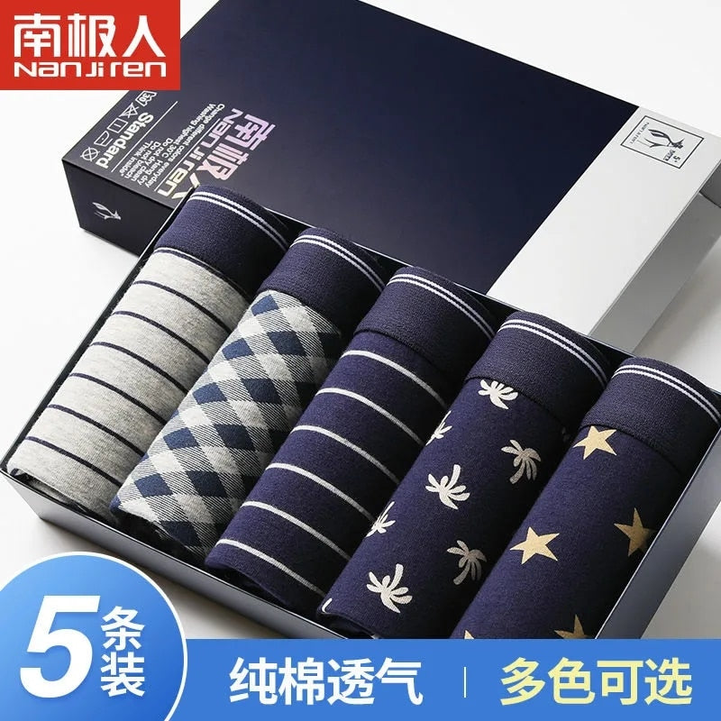 5 Packk Men's Underwear Cotton Boxer Underpants Comfortable Breathable Panties Underwear Boxing Boxershorts