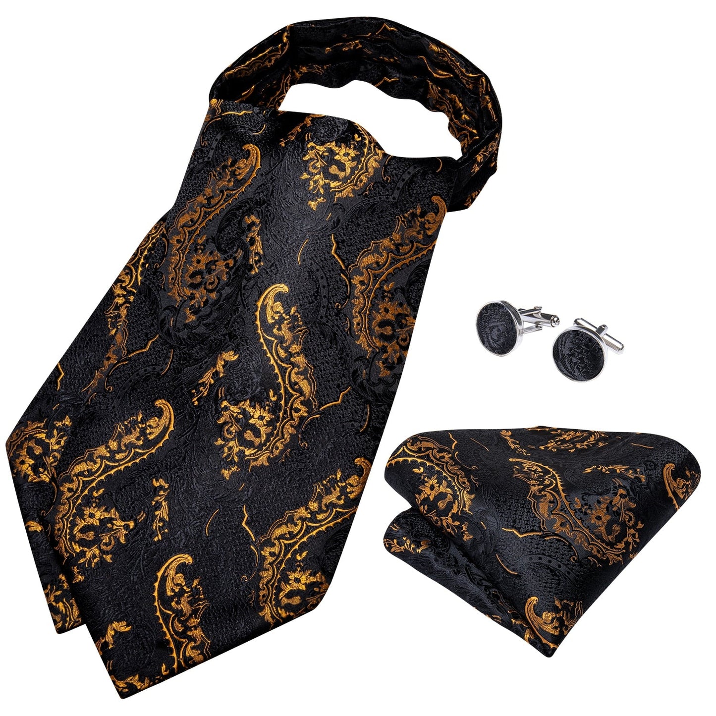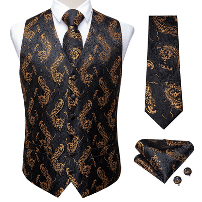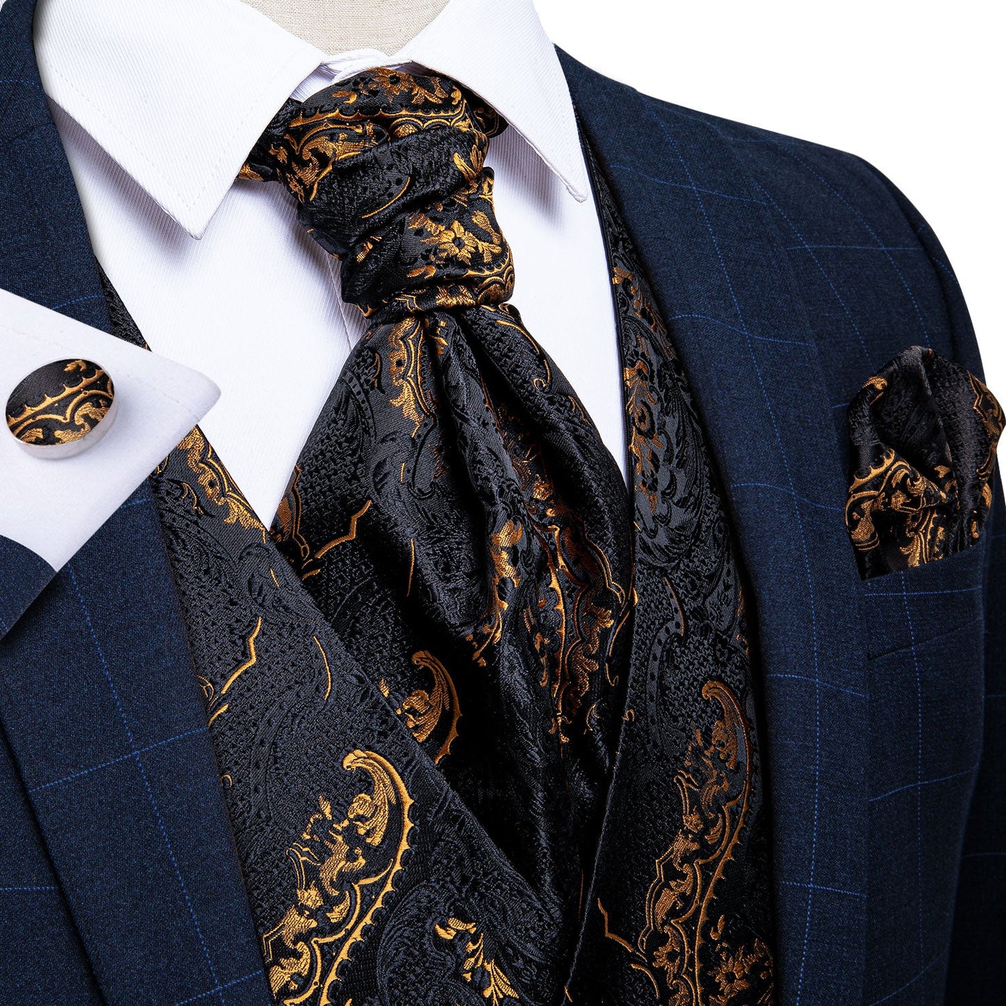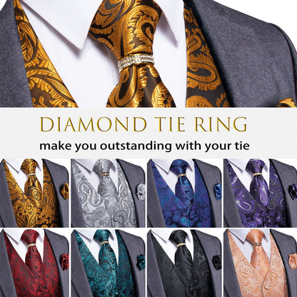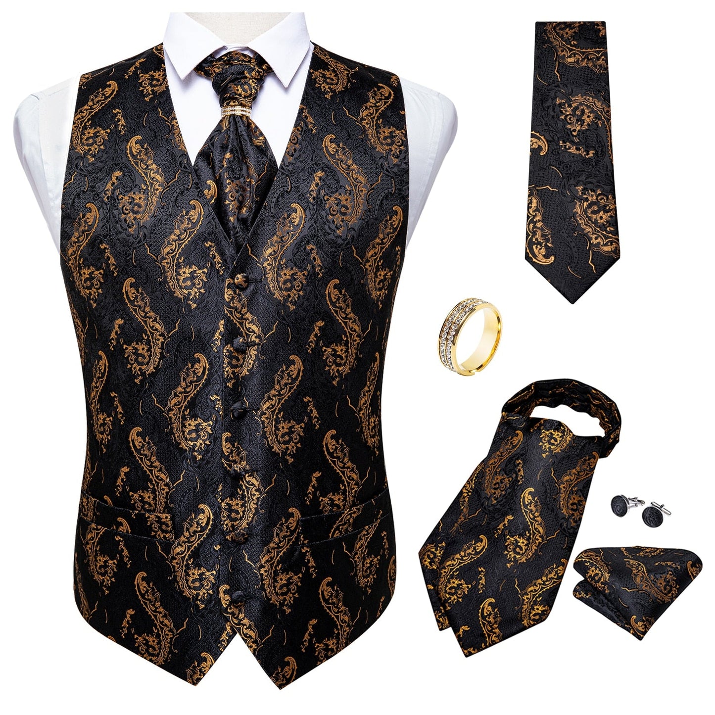 Pay in 4 instalments with AfterPay, Buy Now Pay Later5 Piece Men Gold Paisley Silk Waistcoat Ascot Tie Pocket Square Necktie Ring Set Wedding Formal Dress Vests Set