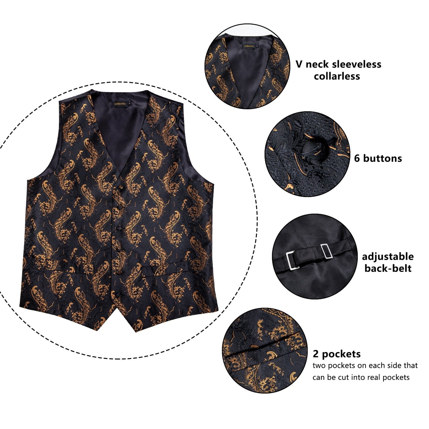 Suit Type: Vest + Pocket Square+Tie+ Cufflinks+Ring