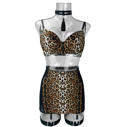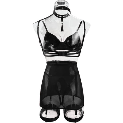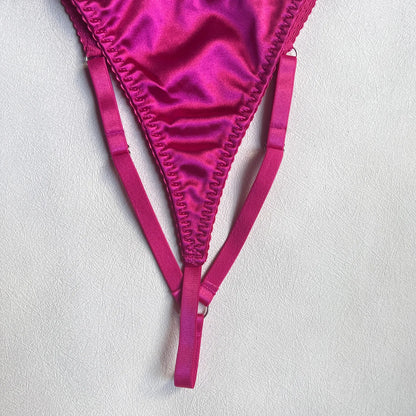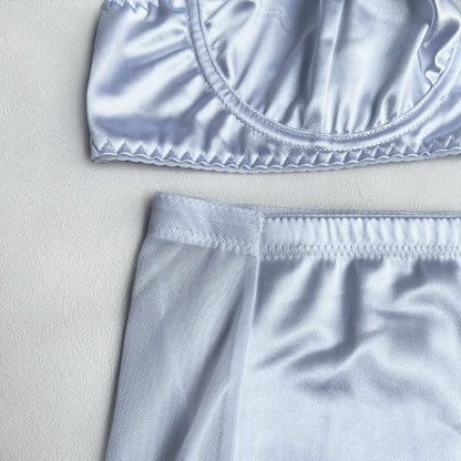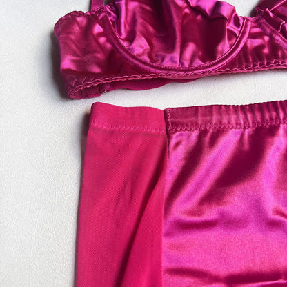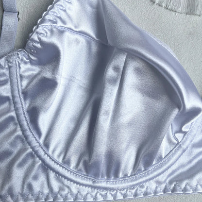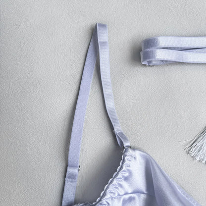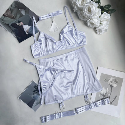5 Piece Satin Lingerie Underwear Lace Seamless Intimate Skirt Bra And Briefs Outfit Set