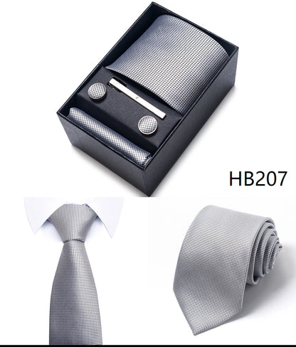 7.5 cm Business Ties Hanky Cufflink Set Tie Clips Green Necktie Corbatas For Men Wedding In Gift Box