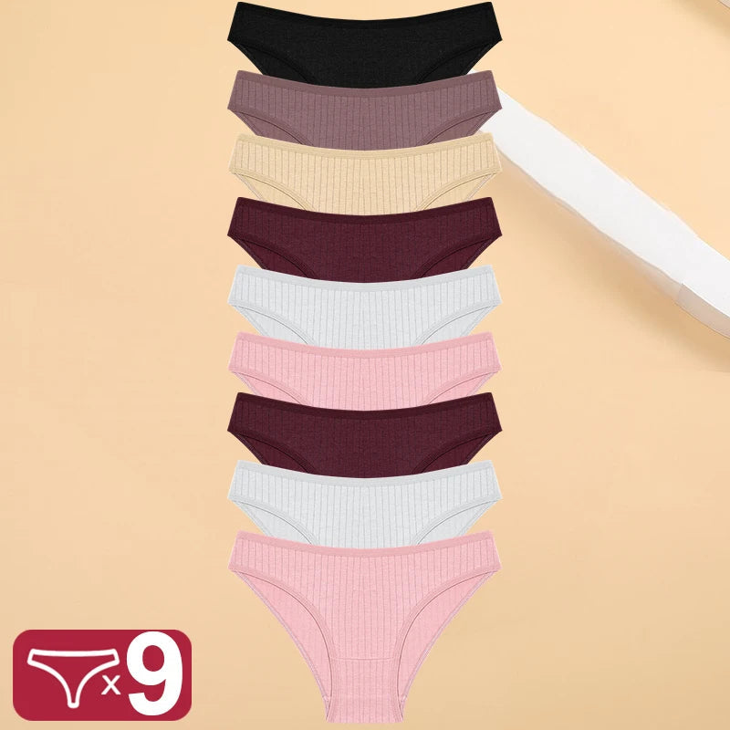 9 Pack Cotton Panties Women Underwear Striped Panty Female Soft Lingerie Briefs Underpant Intimates Set