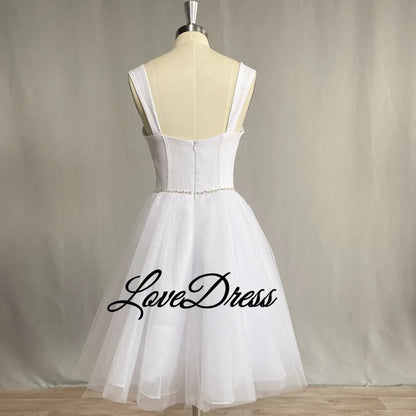 A-Line Sweetheart Short Wedding Backless Tulle Bride Gown Sleeveless Zipper Bridal Dress