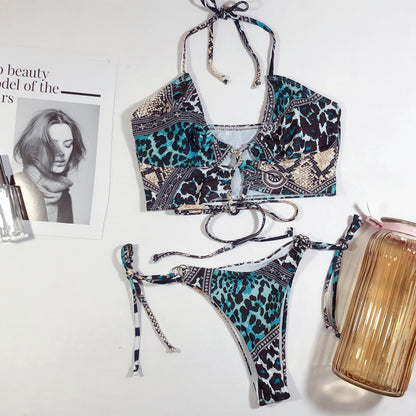 Animal Print Bikini Push Up Swimwear Women Leopard Female Bandage Swimwear Monokini Halter Backless Bathing Suit